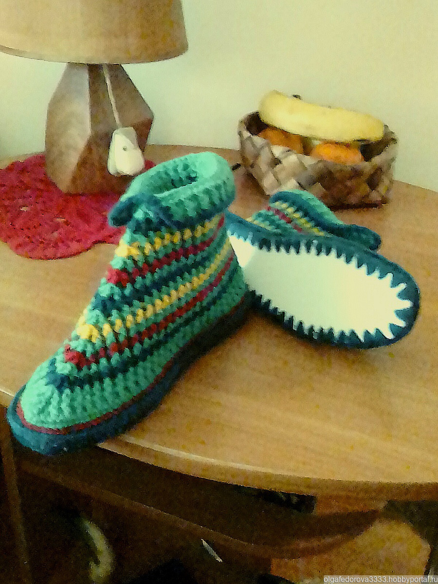 Сапожки домашние , связаны крючком . Подошва - войлок + микропористая резина