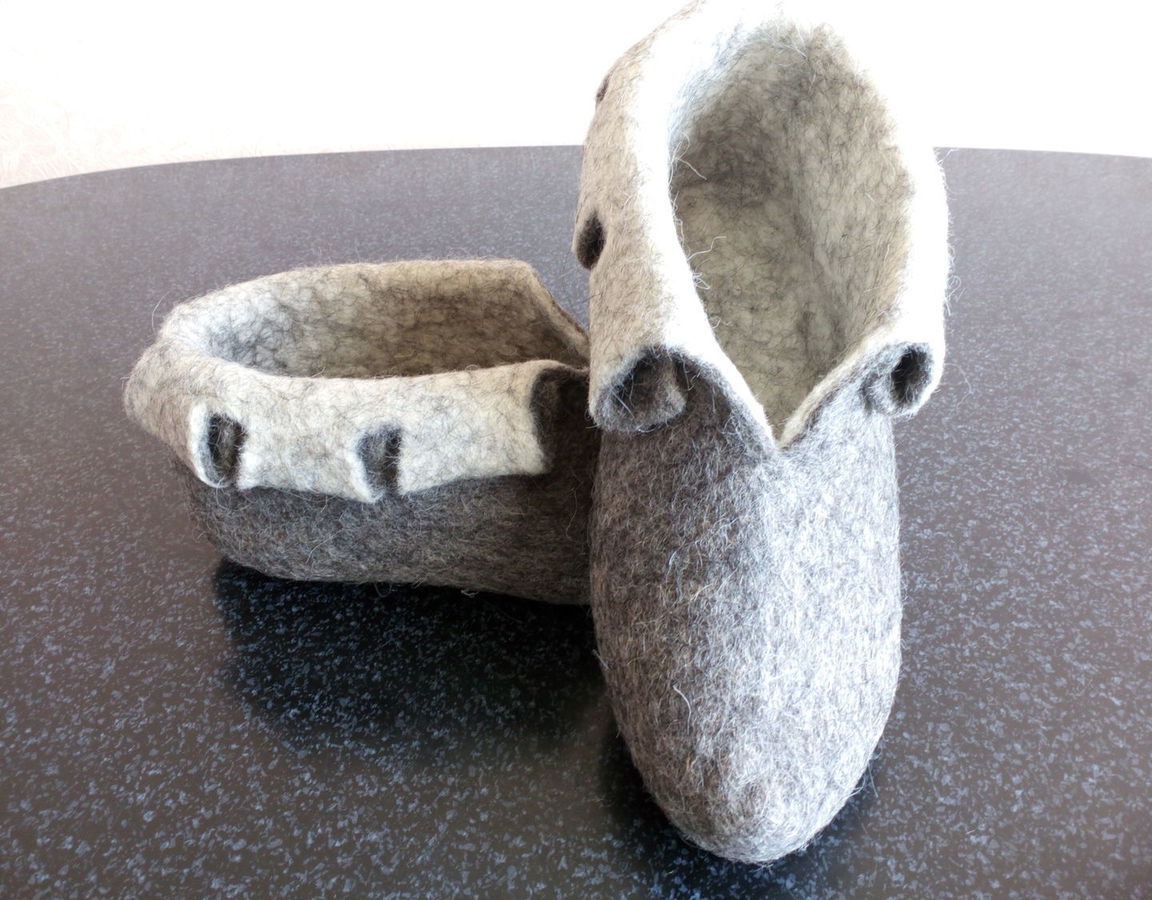 серый, шерсть, обувь ручной работы, тапки ручной работы, тапки мужские, валяные тапки, робин гуд