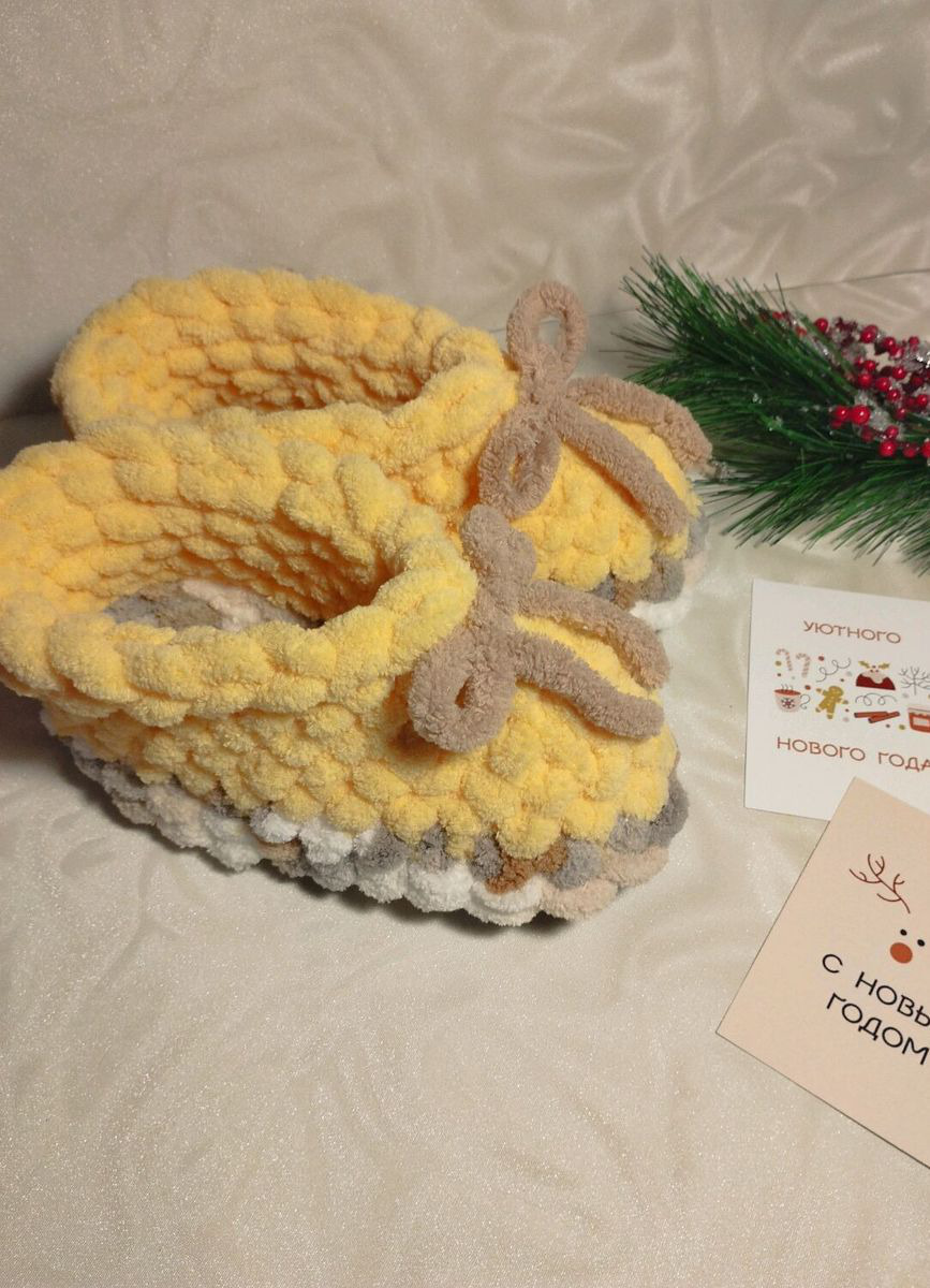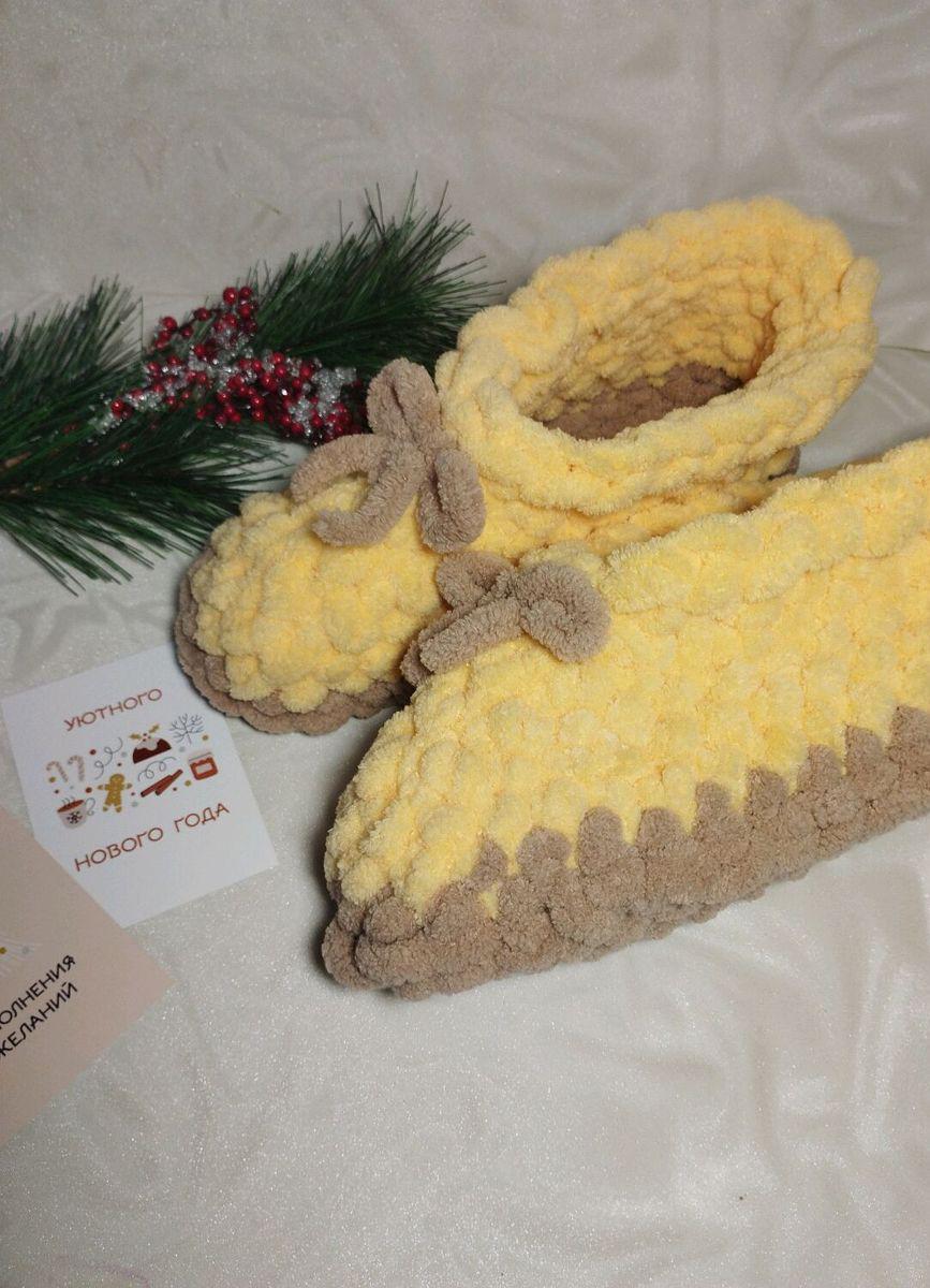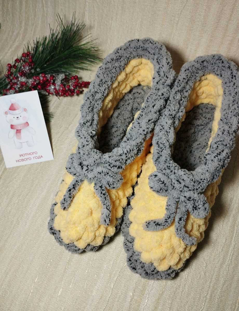 Плюшевые тапочки ручной работы выполнены из гипоаллергенной пряжи станут прекрасным подарком для Вас и Ваших близких!