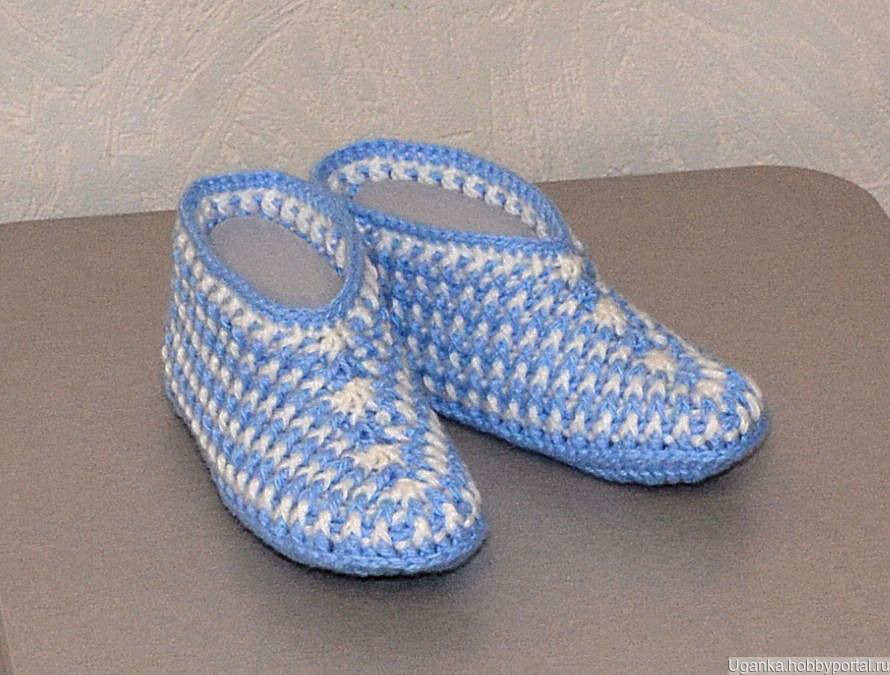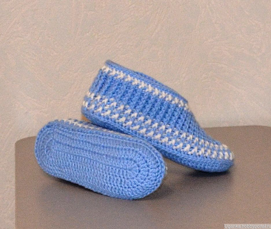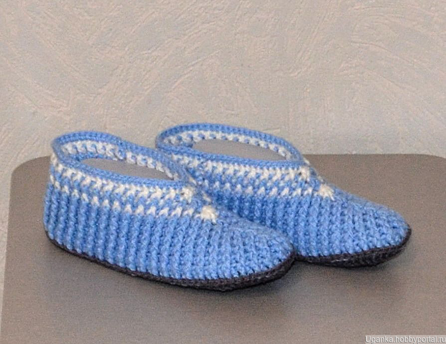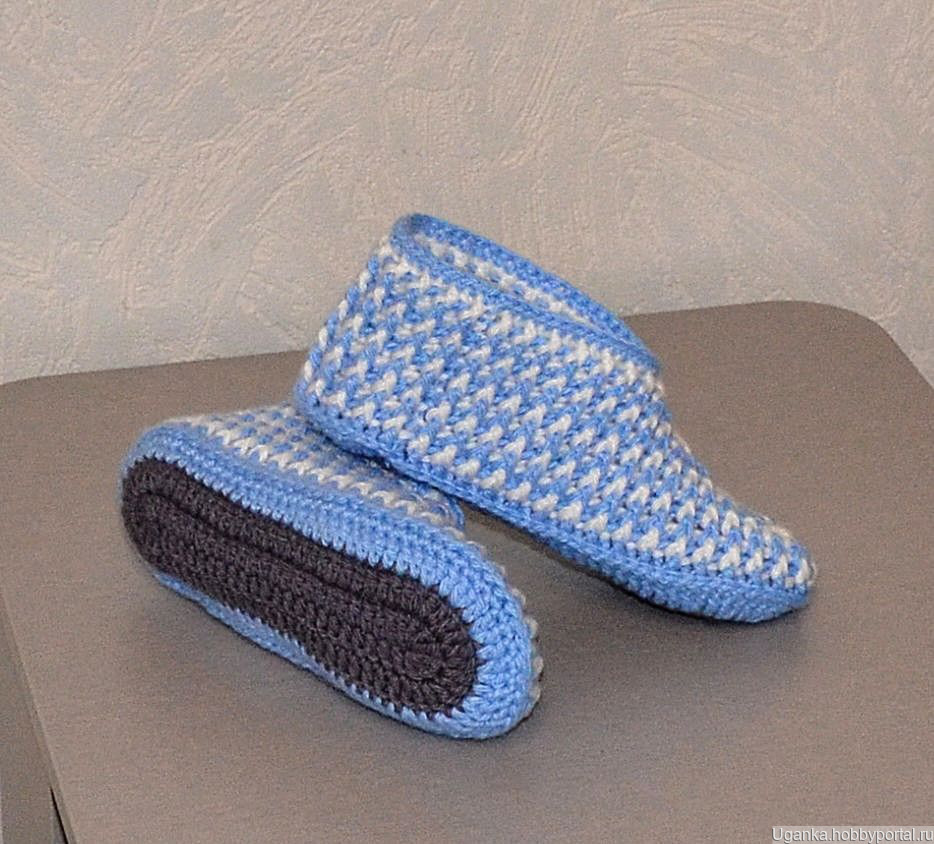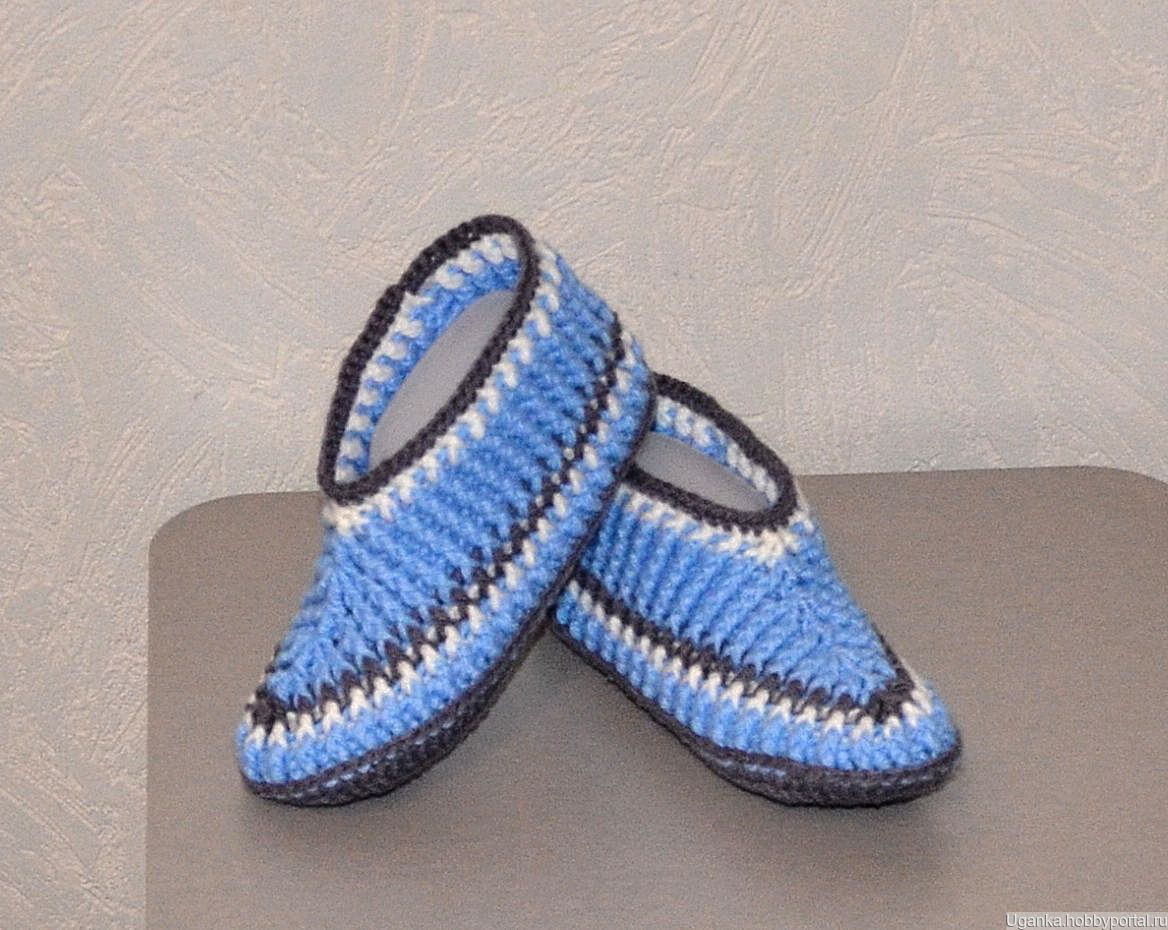 Тапочки-носочки вязаные крючком. Верх тапочек достаточной ширины (так называемый анатомический). Материал - трехниточный акрил шерстяного типа, поэтому в носке показали себя хорошо. При заказе от 3 пар цена 350 руб. Основной цвет голубой.