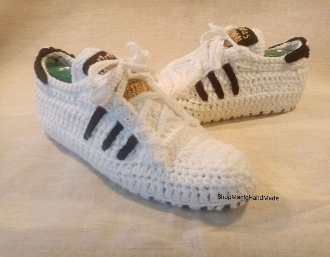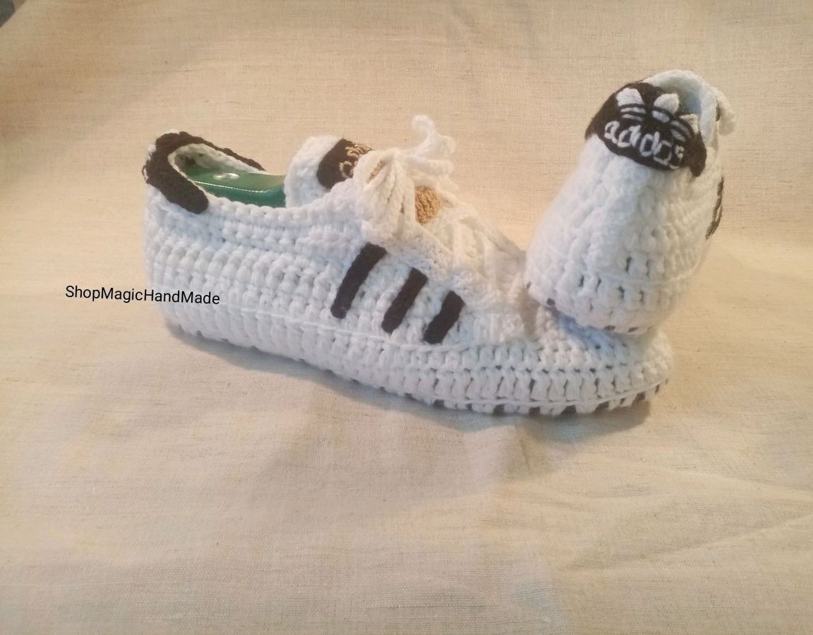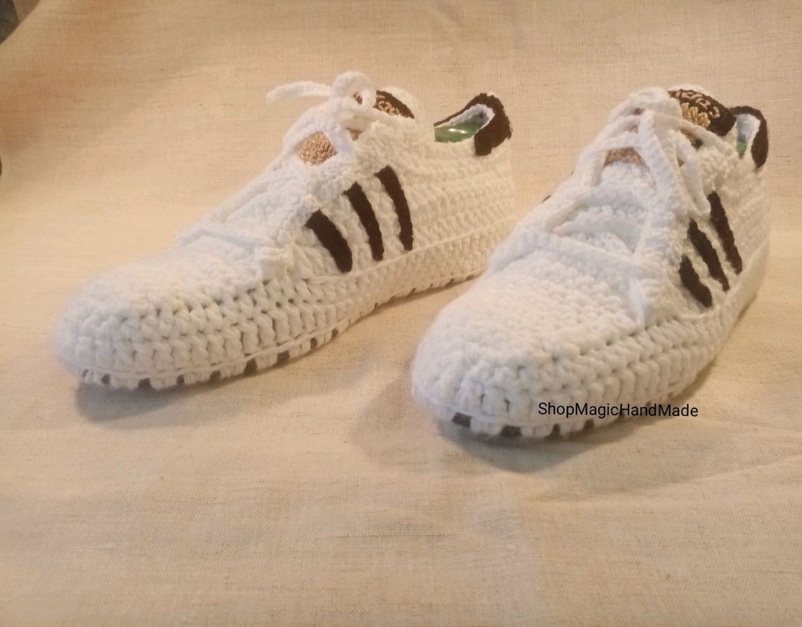 вязаные тапочки, тапочки крючком, тапочки домашние, тапочки женские, тапочки ручной работы, вязание крючком, тапочки мужские, вязаные кроссовки, кроссовки крючком, Кроссовки мужские крючком, Кроссовки Adidas крючком