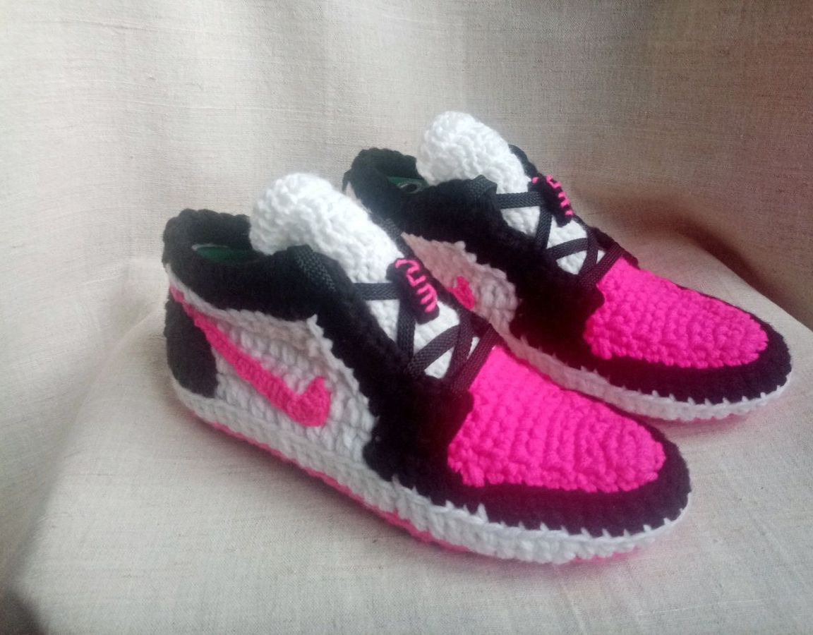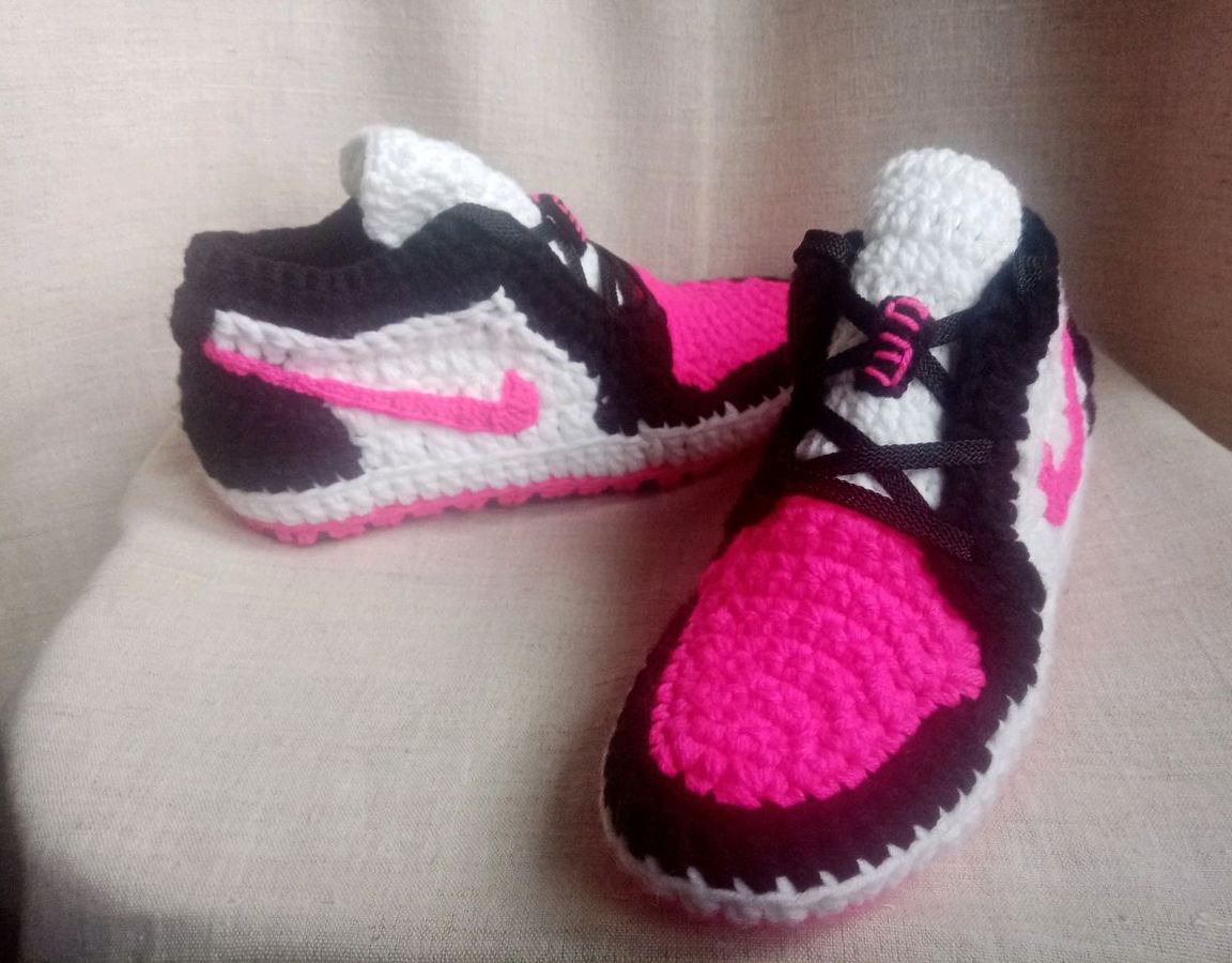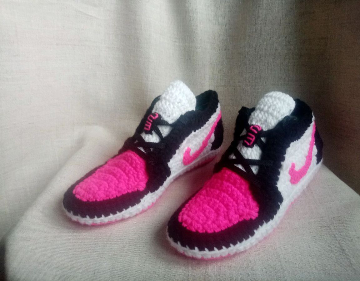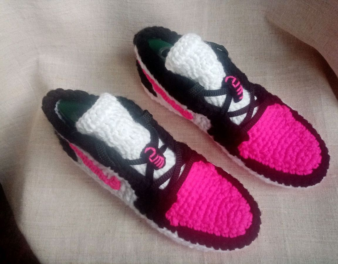 вязаные тапочки, тапочки крючком, тапочки домашние, тапочки женские, тапочки ручной работы, вязание крючком, тапочки мужские, вязаные кроссовки, кроссовки крючком, Кроссовки мужские крючком, Кроссовки Nike крючком