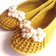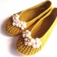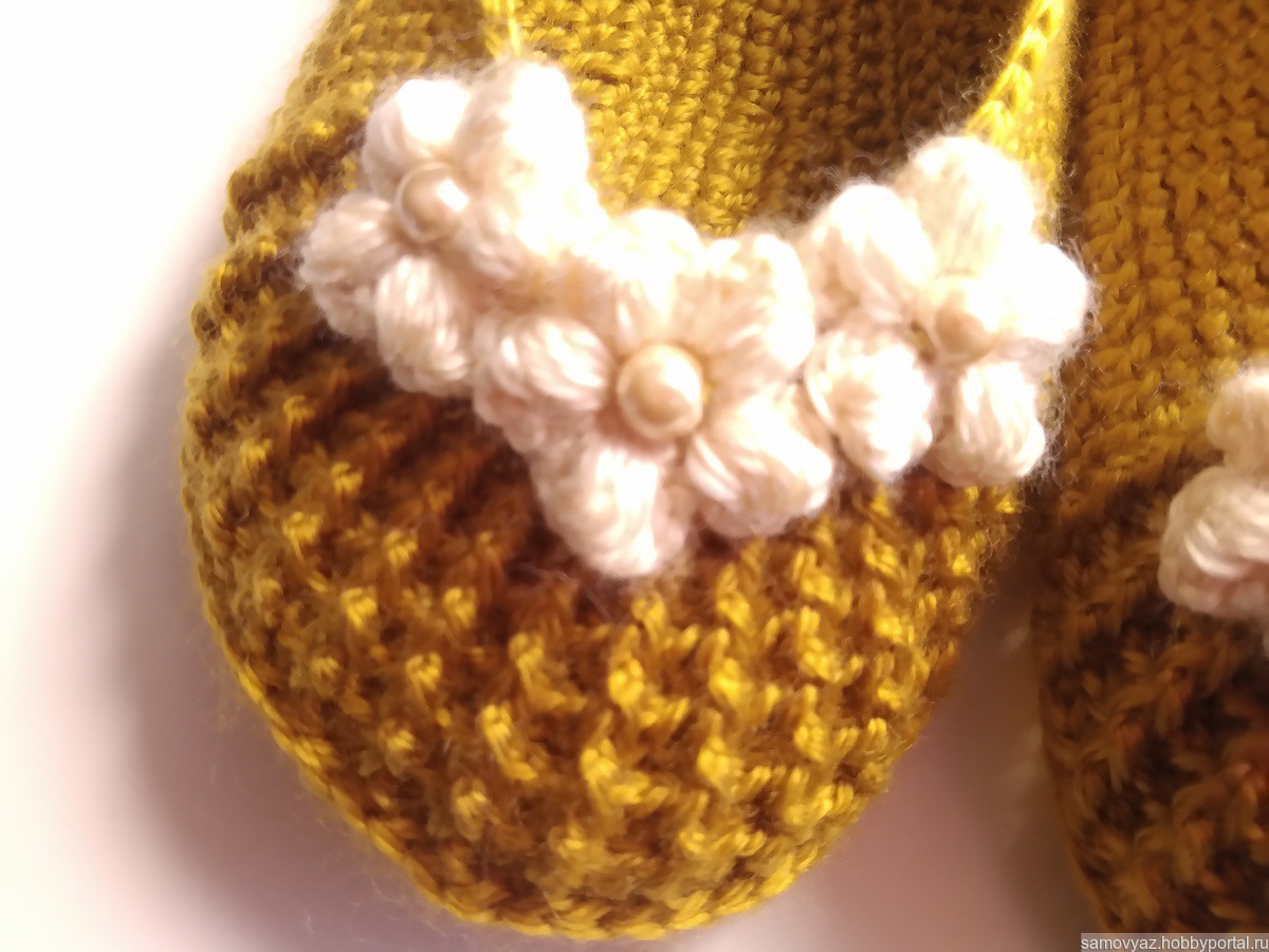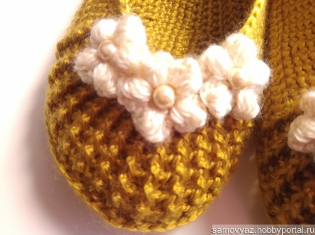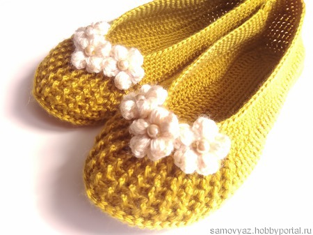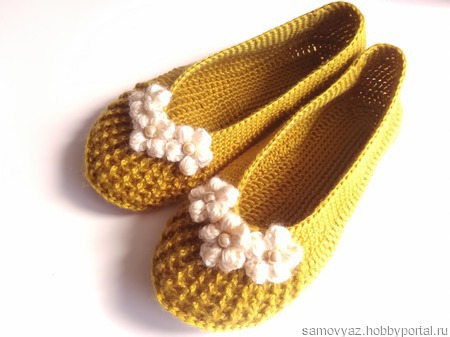 Балетки, связанные крючком из полиэстера. Мягкие, уютные, комфортные, отличная замена домашним тапочкам. Не деформируются при стирке. Размер 36-37, цвет - золотистый.. При заказе возможно исполнение в другом цвете, любого размера. Украшение может быть изменено.
