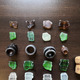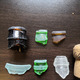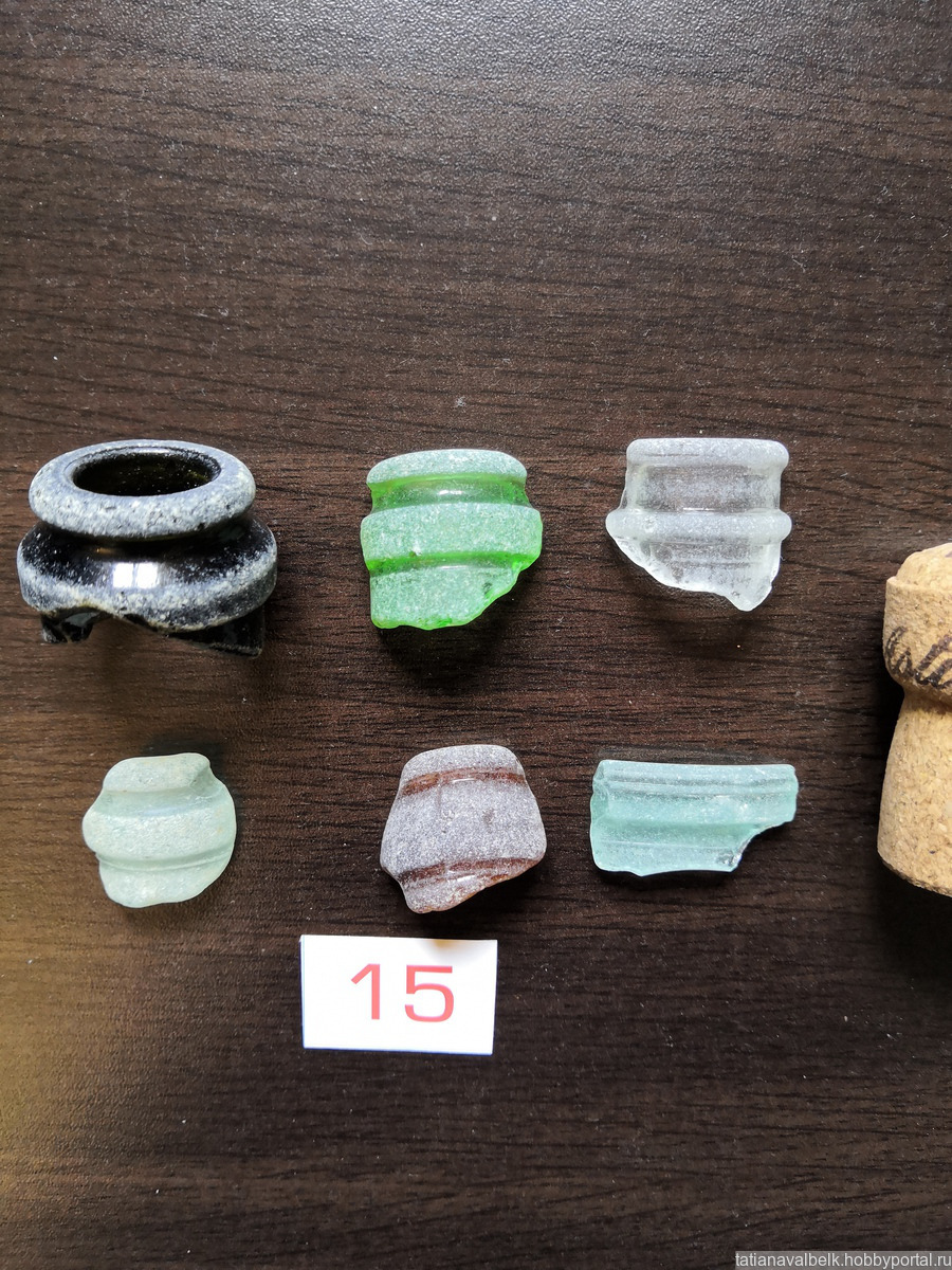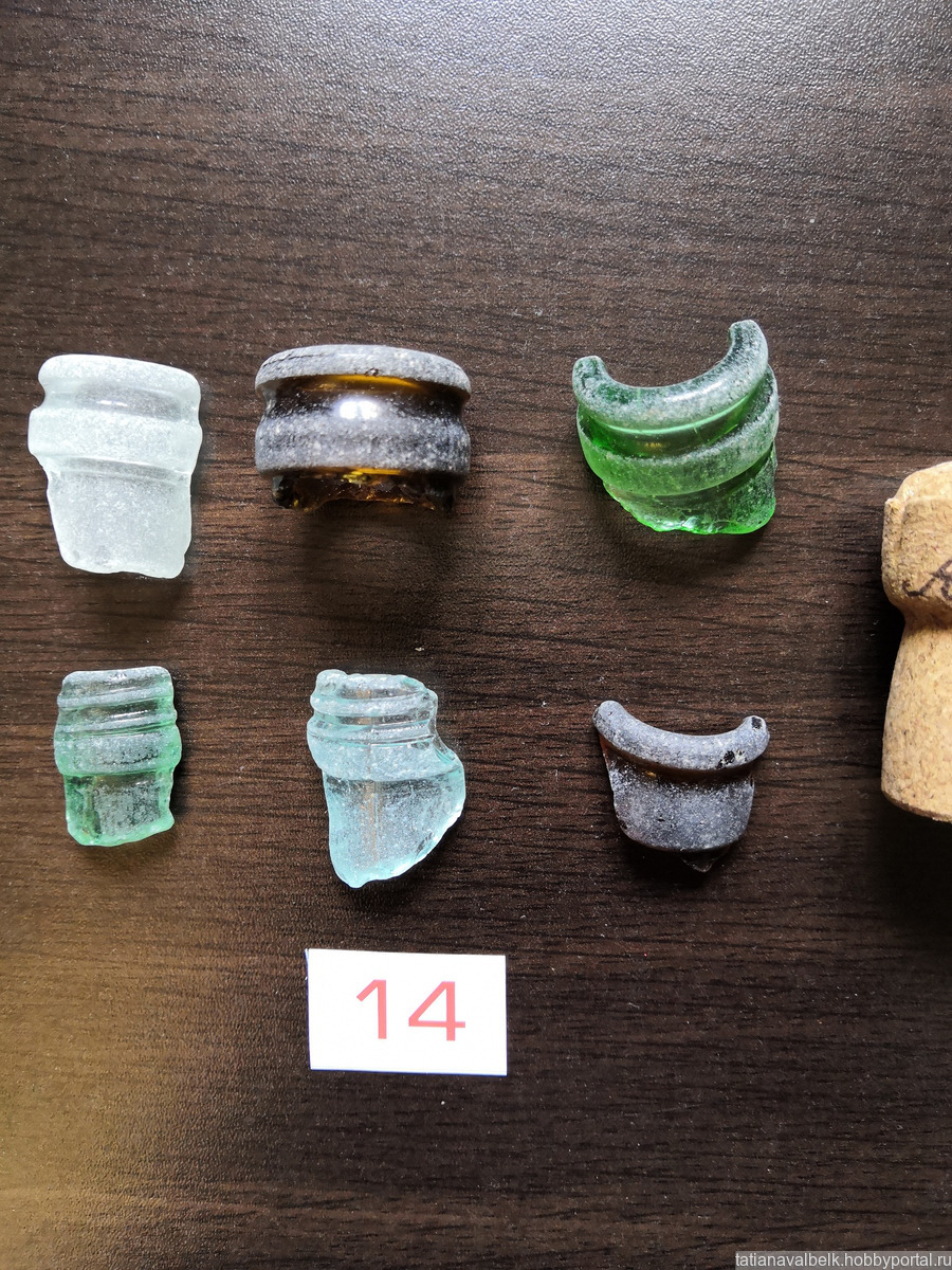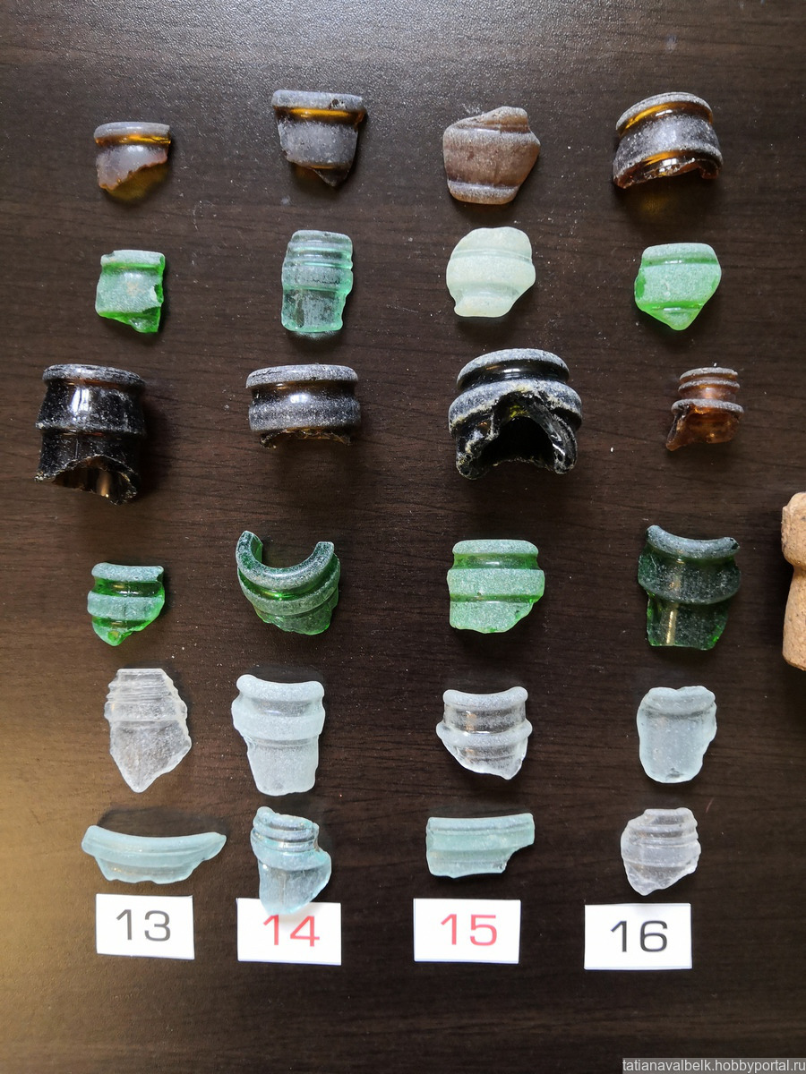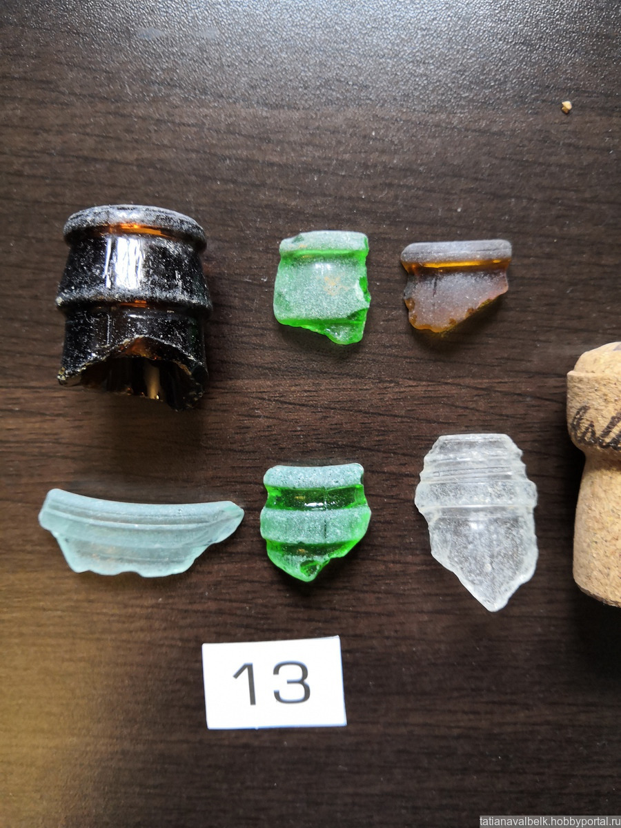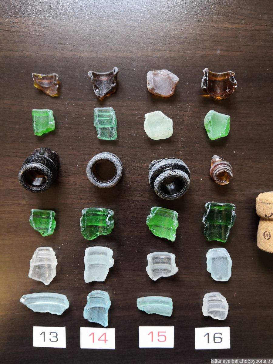 Состав набора - горлышки бутылок, флаконов целиком и фрагментами