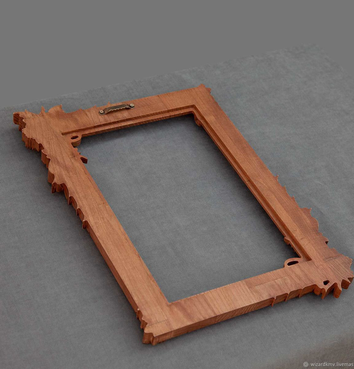 Внешний размер ширина 30см, высота 41 см, толщина 3см. Внутренние границы рамки видимой части изображения (работы) 19 х 29 см. Выборка в задней части изделия под работу- 20 х 30 см, глубина выборки 5мм