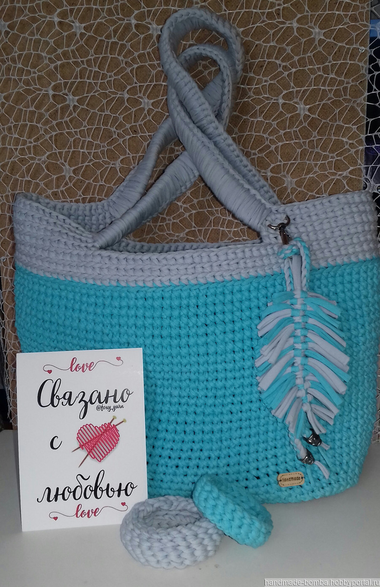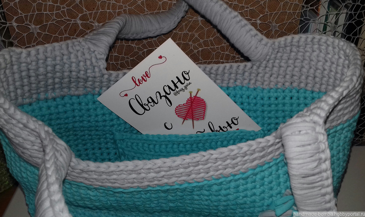 Трикотажная сумка ручной работы. Внутри карман. Дно из экокожи.