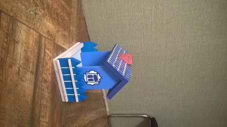 Кормушка сделана из сосны,разрисована акриловыми красками,покрыта лаком в три слоя,не токсична.Кормушка для птиц выполняет сразу несколько функций. Во первых, она является местом для спасения пернатых от голодной смерти. Во вторых, кормушка - украшает экстерьер, садов, парков или попросту улицы. В третьих, установка кормушки - вполне занятный, процесс, который объединяет родителей и детей и обучает младшее поколение нормам поведения и человеческим качествам. Поэтому, при любой возможности, рекомендуем сооружать кормушки.