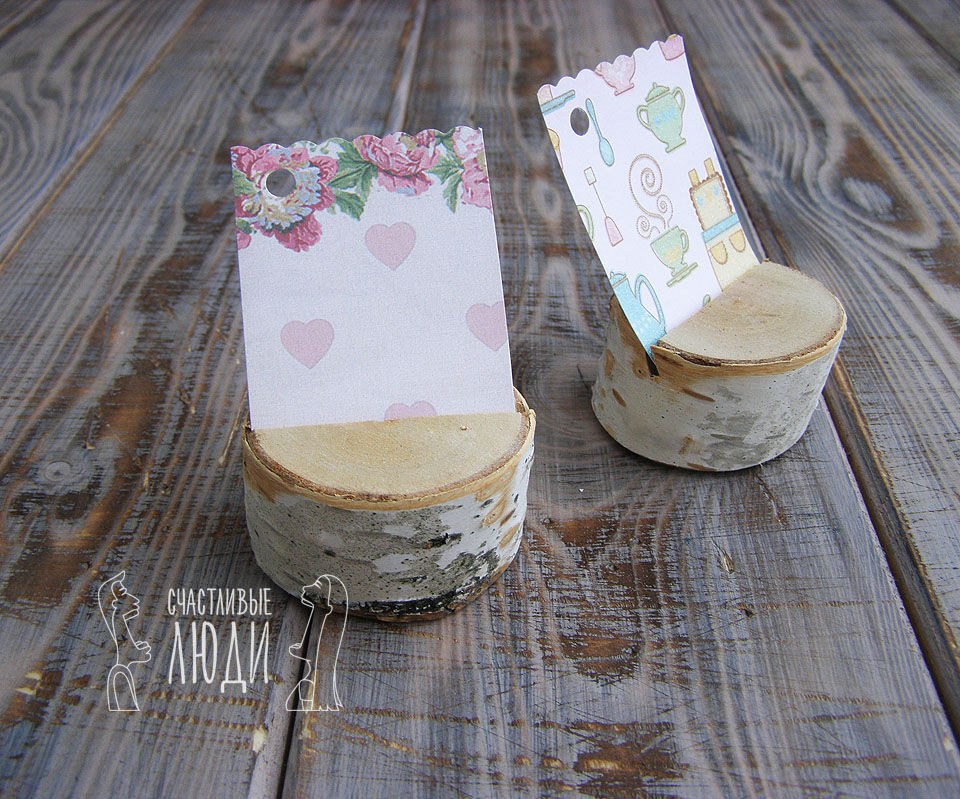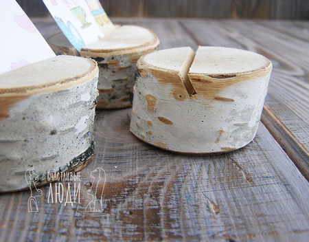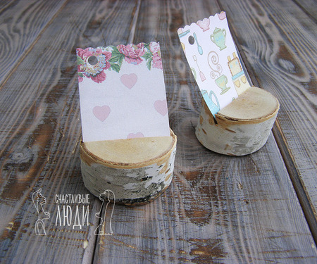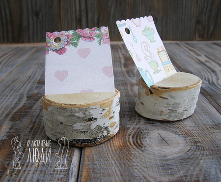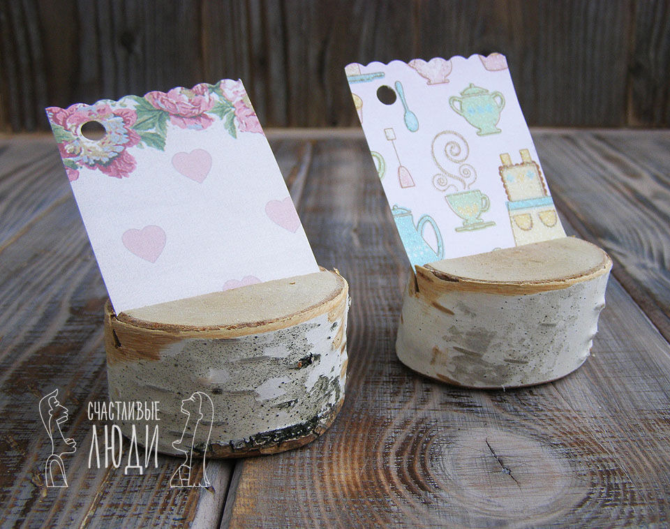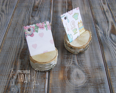 Такие необычные держатели в эко стиле не останутся незамеченными. В них можно разместить как небольшие визитки, так и буклеты размером побольше.