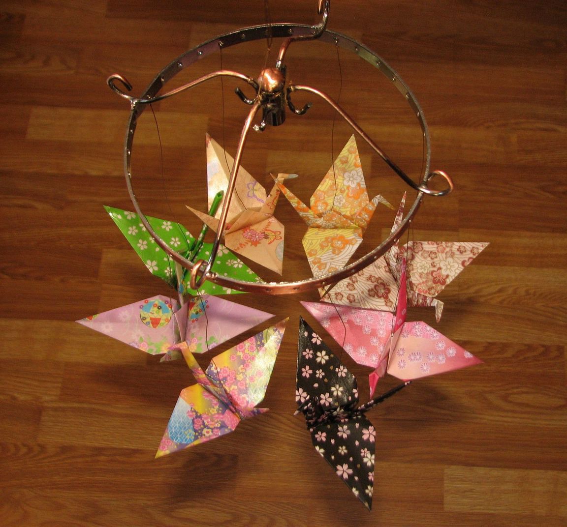 Не мочить, не мять, не сдавливать. У них двойное покрытие лаком, тем не менее, они остаются бумажными)) Не дёргать! Есть риск оборвать фигурки (поэтому если используете, как детское мобиле, вешайте так, чтобы ребёнок не мог дотянуться). Других рекомендаций по уходу нет.
