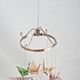 Диаметр кольца - 14 см. Высота журавлика - 5-6 см, размах крыльев - 11-13 см. Длина струны, на которой висит журавлик, - 16 см. Общая длина от верхушки "ветра" до низа - 26,5 см. Длина петли для подвешивания - 11,5 см.