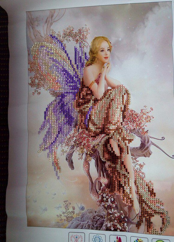Картина выложена круглыми акриловыми стразами по полотну - основе с нанесенным 3D - изображением, схемой и клеевым слоем в технике алмазной мозаики. Стразы представляют собой небольшие камушки, круглой формы, которые имеют огранку, как у алмазов. Такая форма страз, способствует игре света на готовой картине, что делает готовые работы «живыми»