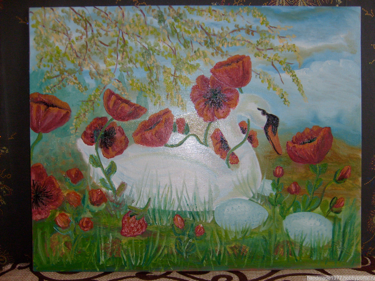 маки, мак, подарок, яйцо, картина для интерьера, пейзаж, лебедь, рождение, масло картина, гнездо птицы