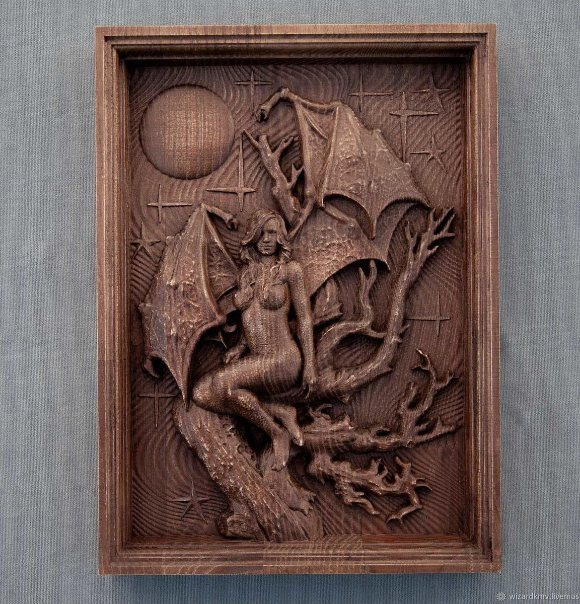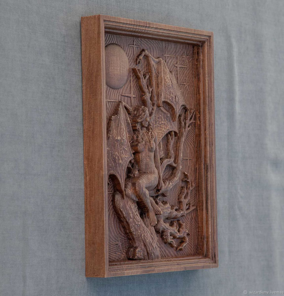 фэнтези, леди, дракон, барельеф, фэнтези дракон, барельеф из бука, барельеф животные, барельеф из дерева