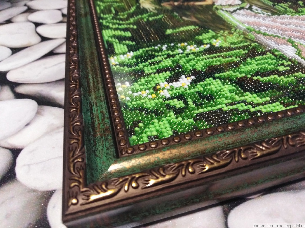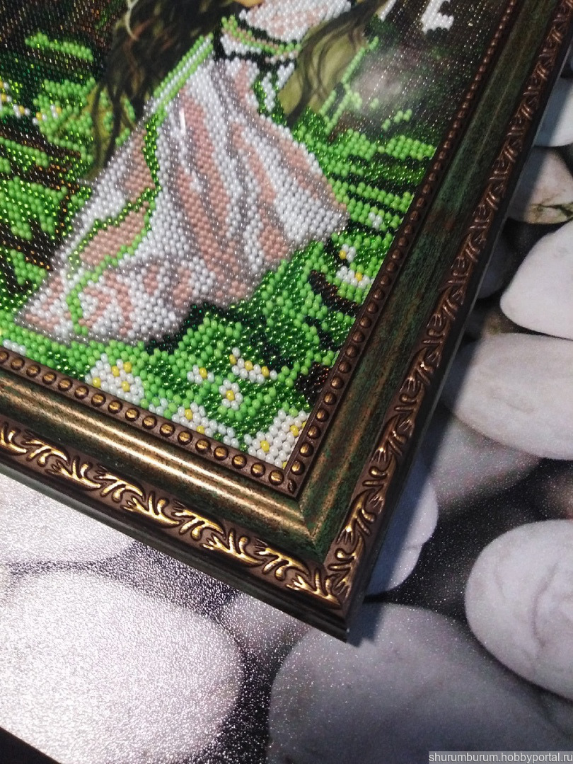 Картина "Лесная фея" вышита бисером. Оформлена в багет под стекло. Размер 22х30.