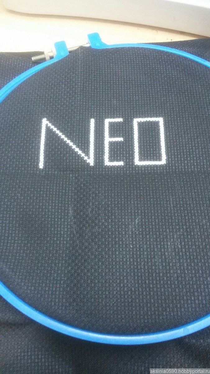 На этой картине вышита надпись имени главного героя фильма "Матрица".