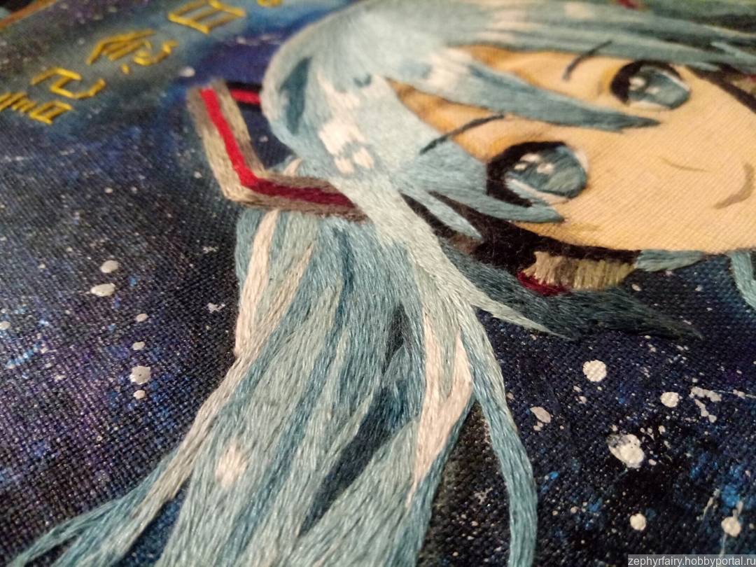 голубой, звезда, вышивка, подарок, девушка, необычный, аниме, роспись, вышивка гладью, гладь, космос, микс