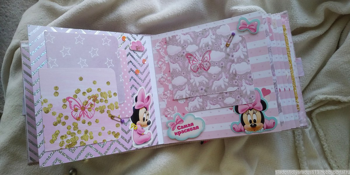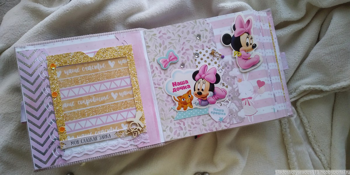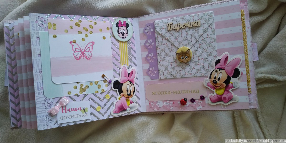 -Объем на 48 фотографий+Конвертик для бирочки -рамочка УЗИ? ?Фотоальбом "Минни Маус?