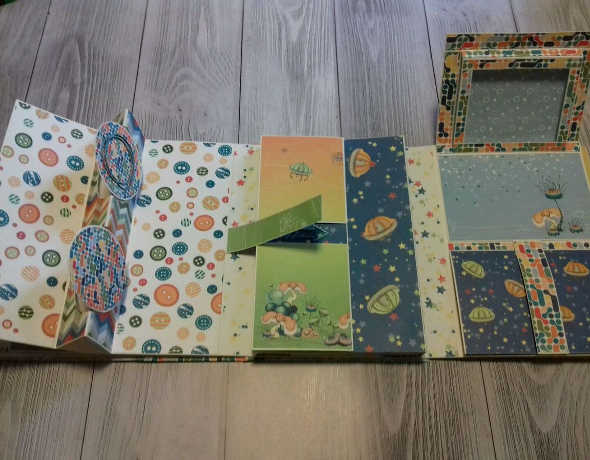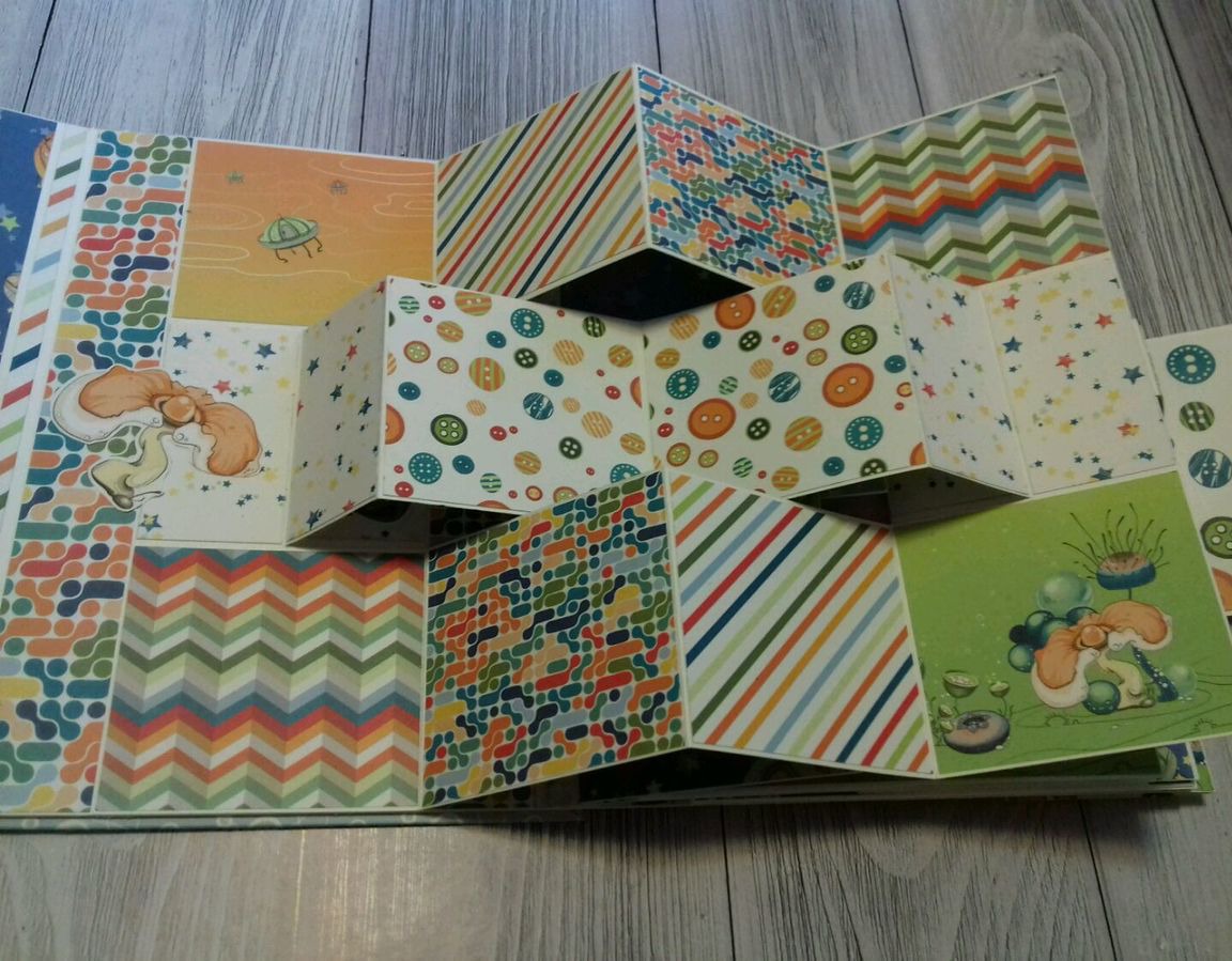 Вот он мой магнитный красавец (все закрывашки держатся на магнитах). Альбом для мальчуковых фотографий разного формата (от 7*7 до 15*20 см). Pop-up элементы в компании с инопланетянами обязательно понравятся вашему малышу и превратят обычный просмотр фотографий в настоящее Космическое путешествие)).