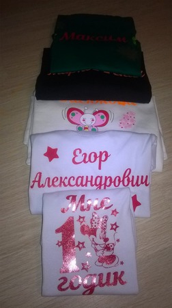 Футболочки для девченок и мальчишек с различными надписями. Любая надпись, различные цвета.