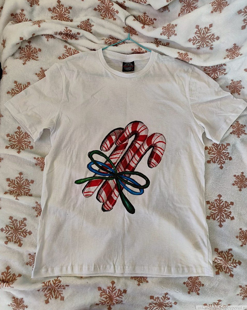 Новый год, футболка, леденцы, футболка с рисунком, футболка с принтом