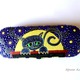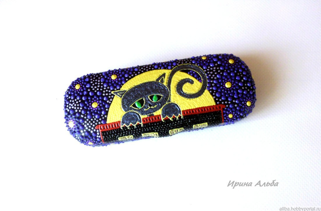 Футляр для очков Черный кот расписан в технике точечная роспись и покрыт защитным лаком. Оригинальный подарок, который не потеряется даже ночью - глаза кота светятся в темноте.