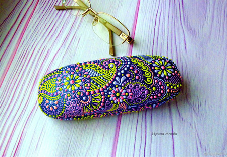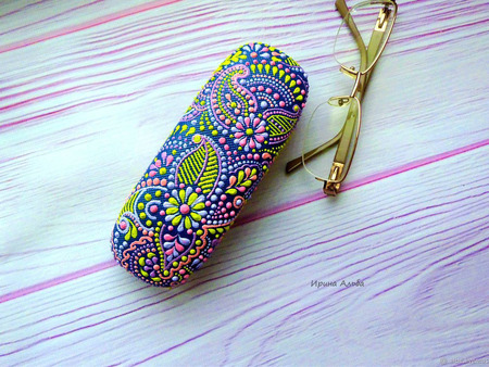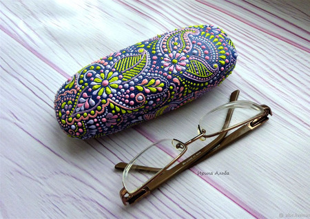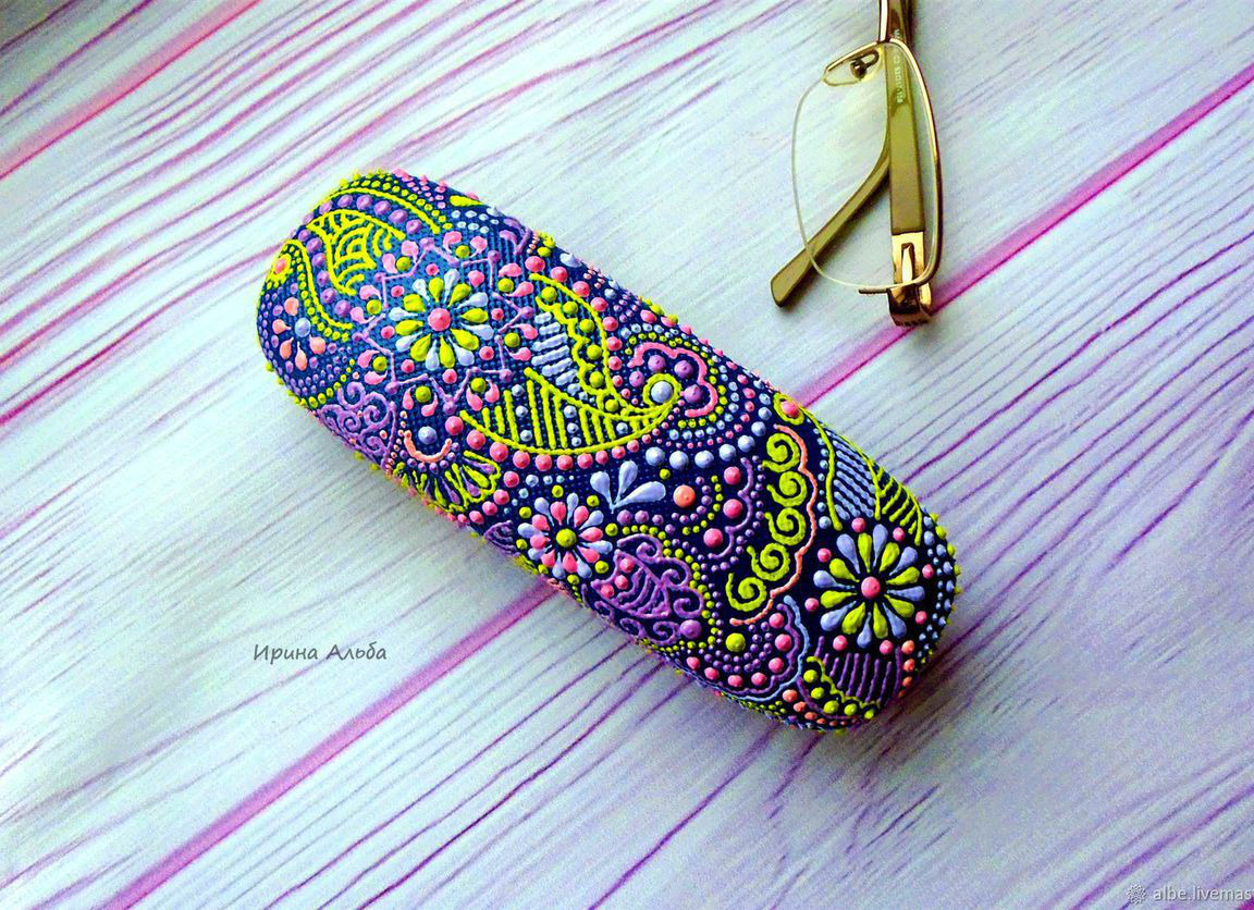 подарок женщине, подарок на любой случай, лиловый, подарок учителю, очечник, футляр для очков, точечная роспись, лаймовый, ирина альба, очешник точечная роспись, приятный сюрприз, подарок девушке подруге, подарок коллеге шефу, аксессуар с росписью