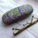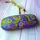 Футляр для очков расписан в технике точечная и контурная роспись в лилово-лаймовой гамме. Очень свежий и нежный! Приятный на ощупь.