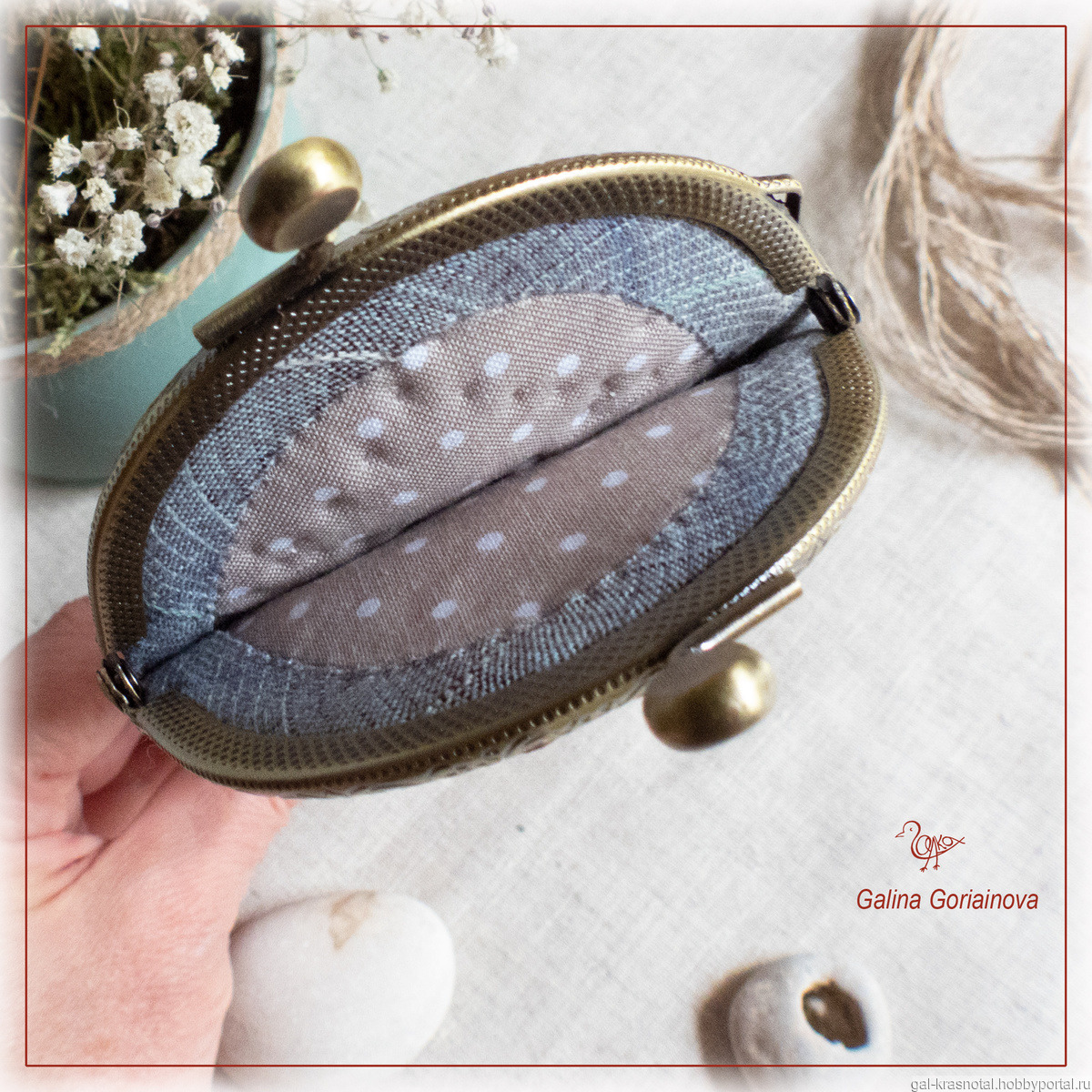 Фермуар цвета античной бронзы, 8.5 см. Подкладка из американского хлопка для пэчворка.