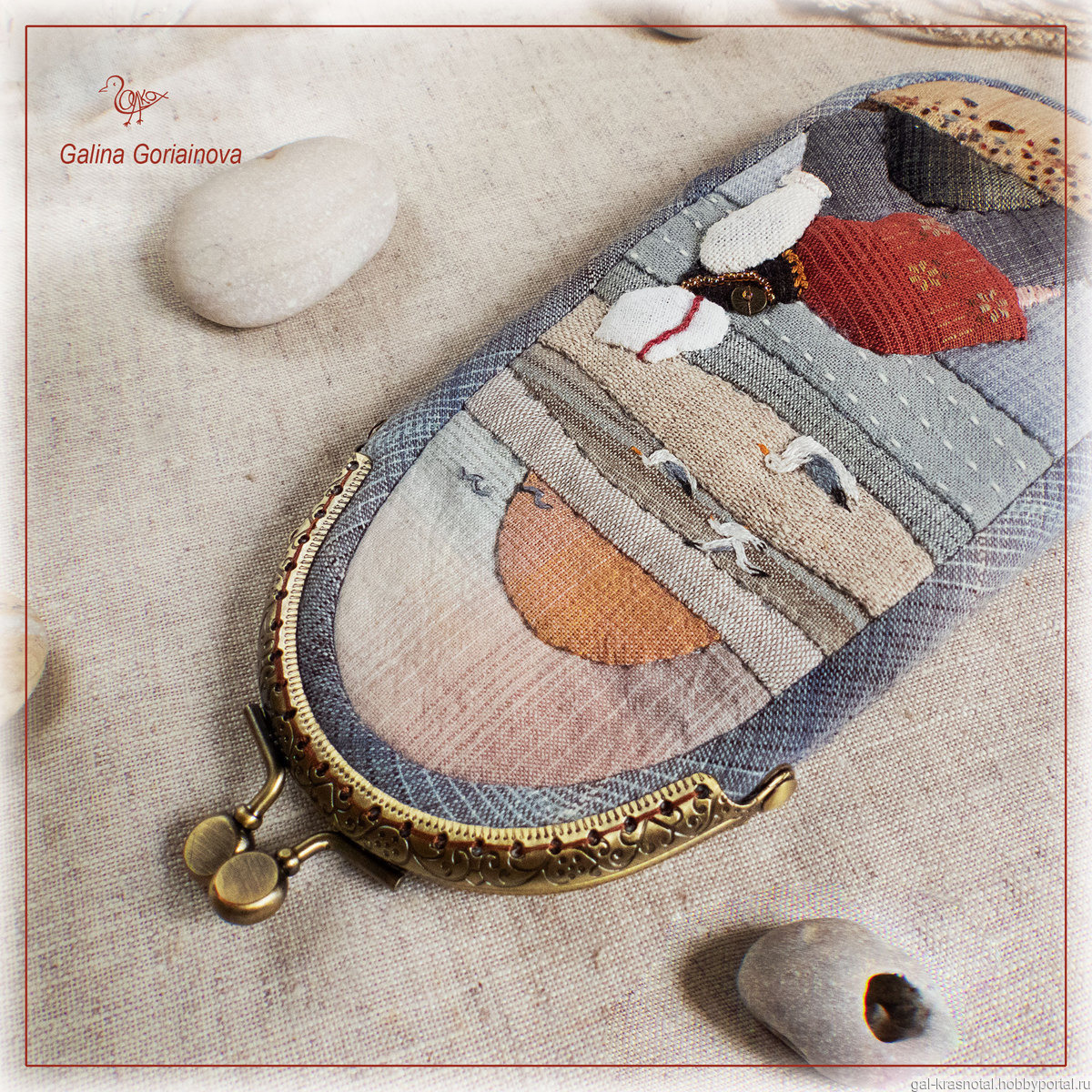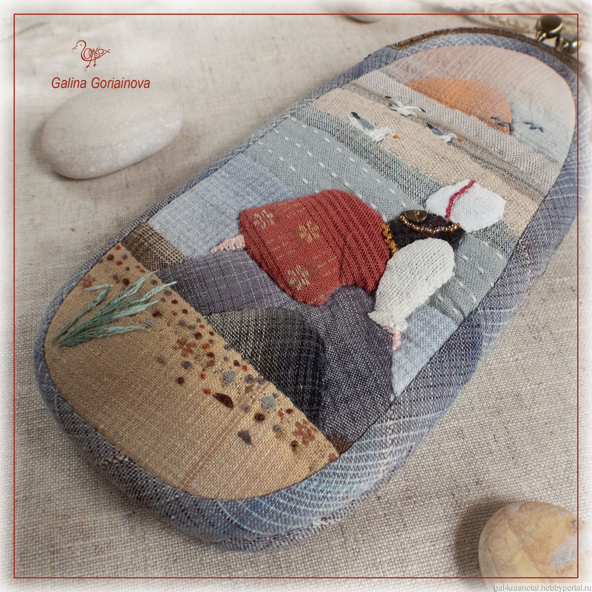 Очечник "Балтика" выполнен в технике японского пэчворка - мелкая аппликация из кусочков японского фактурного хлопка.