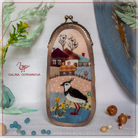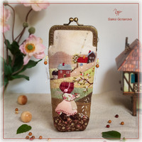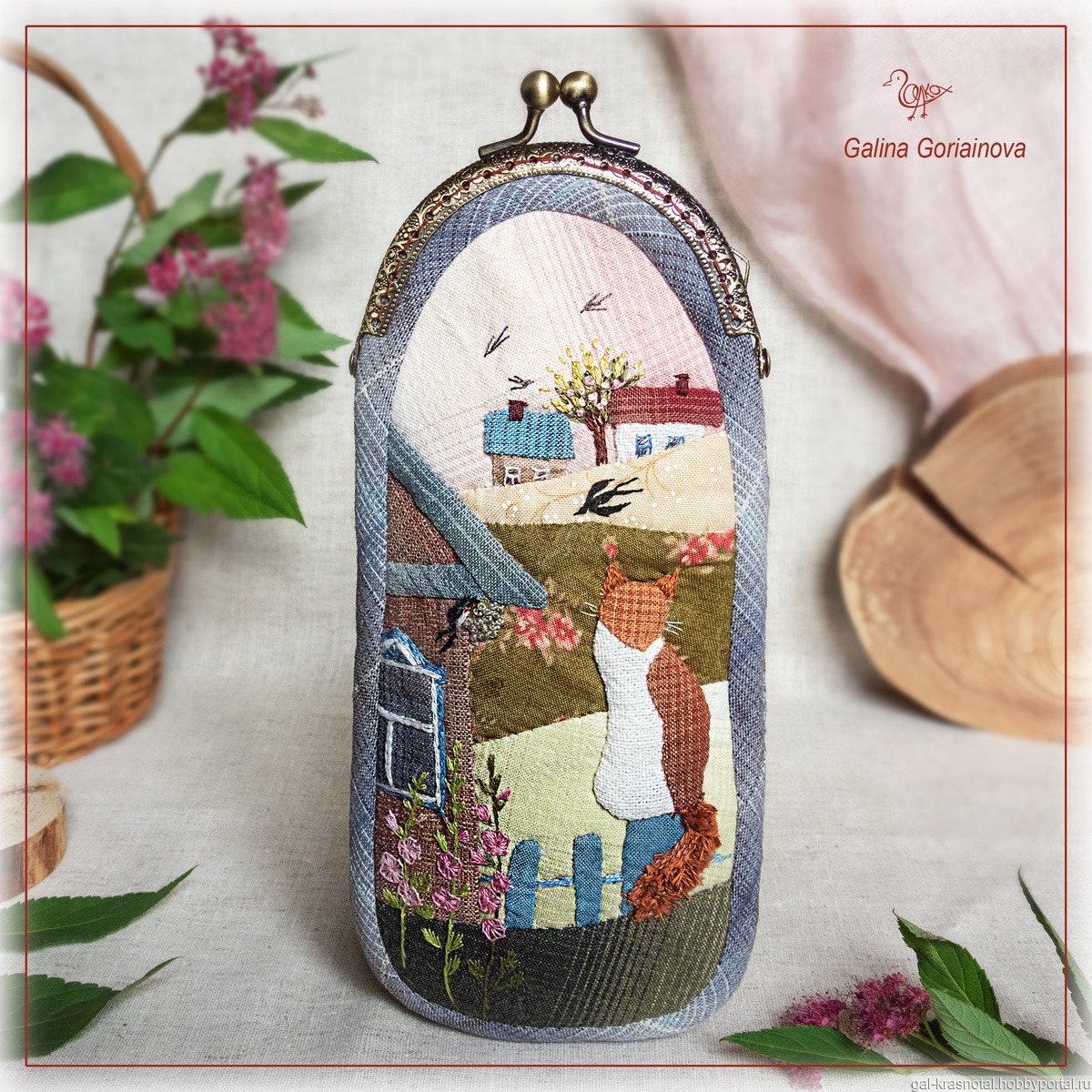 Аппликация, вышивка, стежка и сборка очечника выполнены вручную, дизайн авторский. Очечник продублирован двойным флизелином, хорошо держит форму.