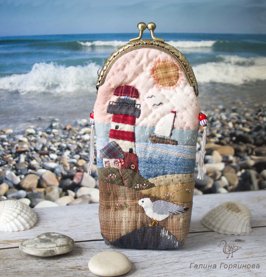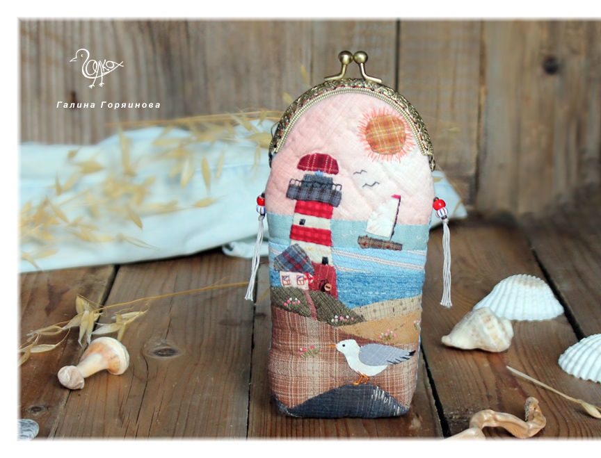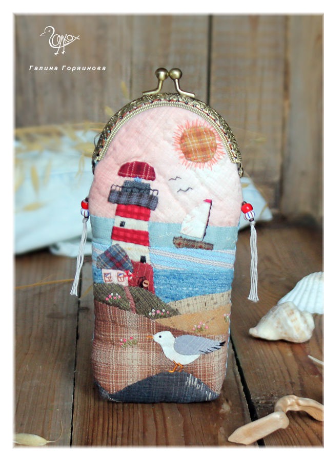 голубой, море, кораблик, маяк, пэчворк, очешник, морской стиль, домики, очечник, чайка, купить футляр для очков, очечник купить, очечник с фермуаром, очечник из ткани, лоскутный, для очков, купить чехол для очков, чехол для очков купить, подарок очечник