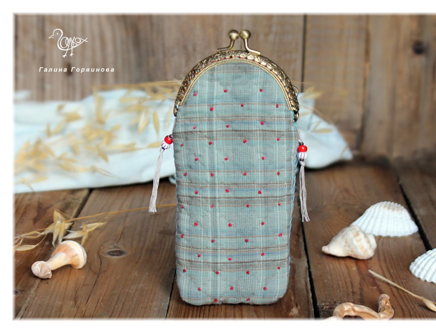 Аппликация, вышивка, стежка и сборка очечника выполнены вручную, дизайн авторский. Очечник продублирован двойным флизелином, хорошо держит форму. Фермуар цвета античной бронзы, 8.5 см. Подкладка из американского хлопка для пэчворка.