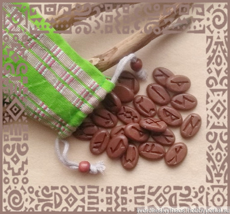 Возможно изготовление подобных наборов из запекаемой пластики любого цвета (+300 р. к базовой стоимости) или древесной пульпы. Вы также можете заказать тонирование сухими пигментами (+100 р) или окраску акриловыми красками (вмешивается в массу при лепке) базового набора (+200 р.), только выделение рун цветом (+300 р.) или всё вместе (+600 р.).