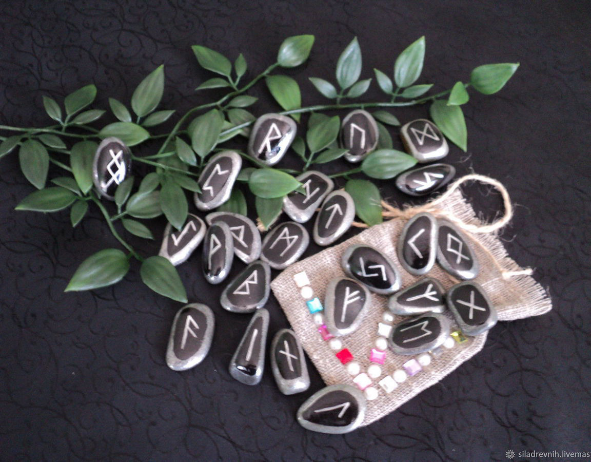 Руны изготовлены по всем правила Скандинавской традиции на морском камне, будут служить вам помощниками долгое время. Описание прилагается.