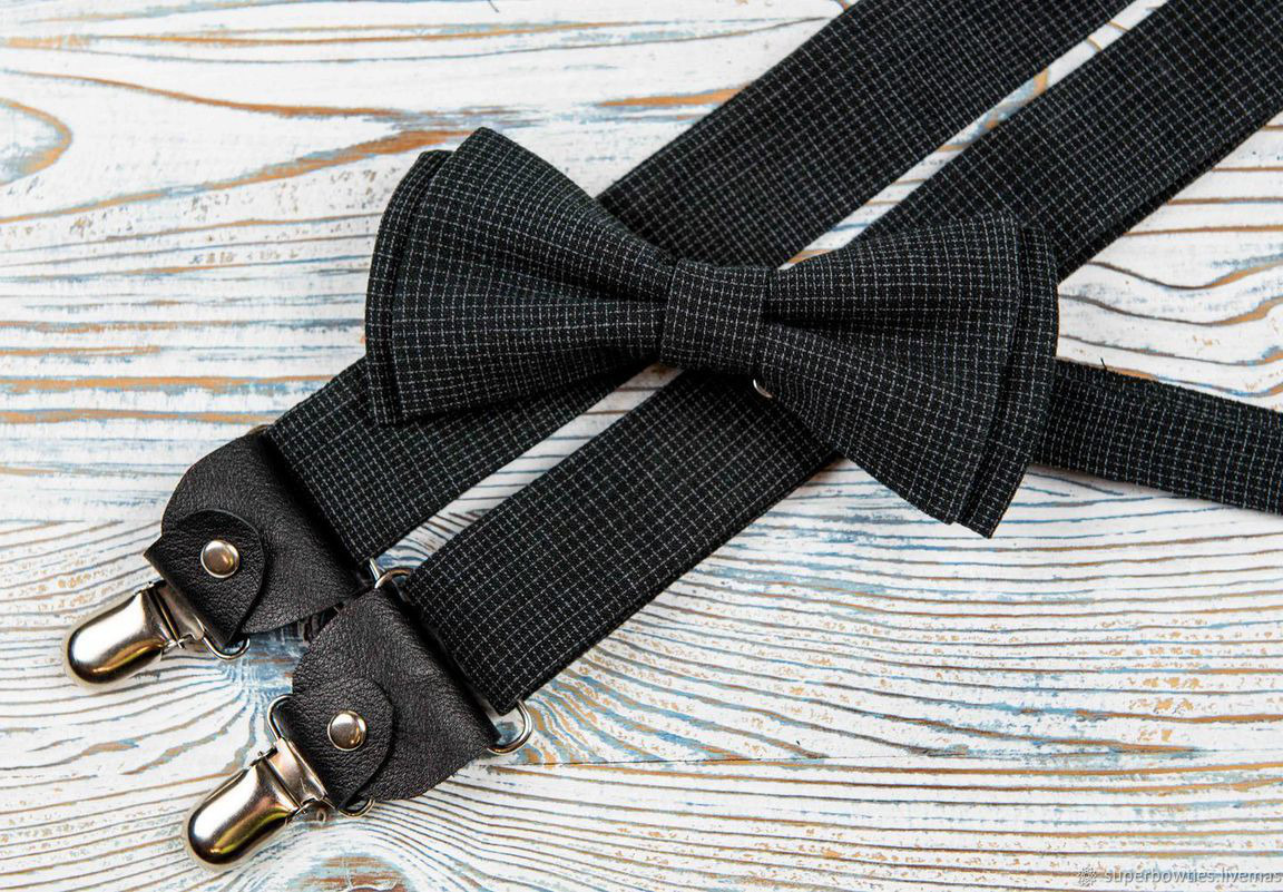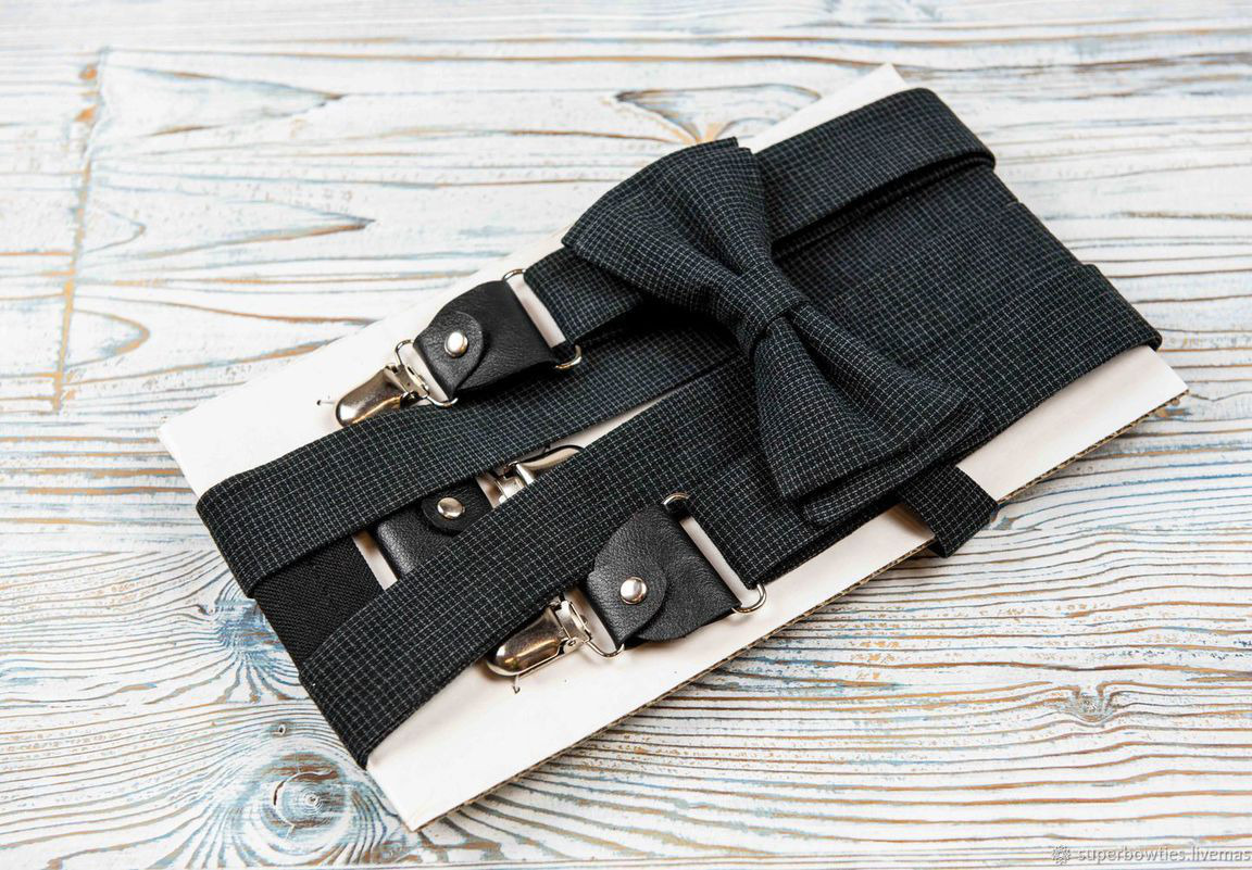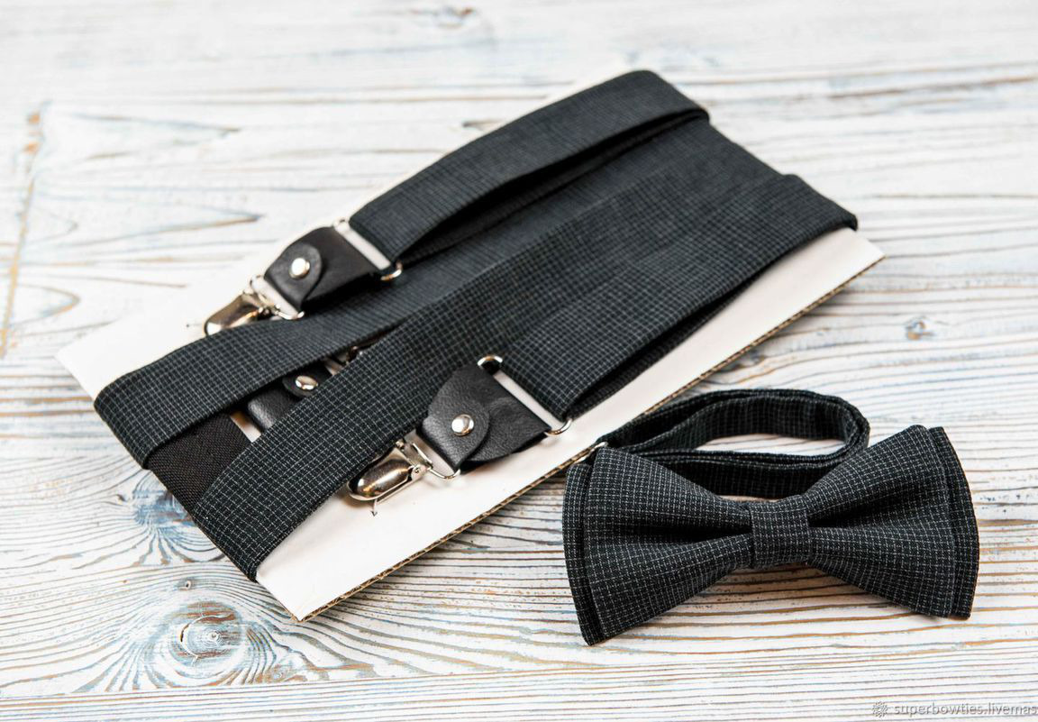 серый, бабочка, черный, бабочка галстук, набор с подтяжками, бабочка и подтяжки, подтяжки
