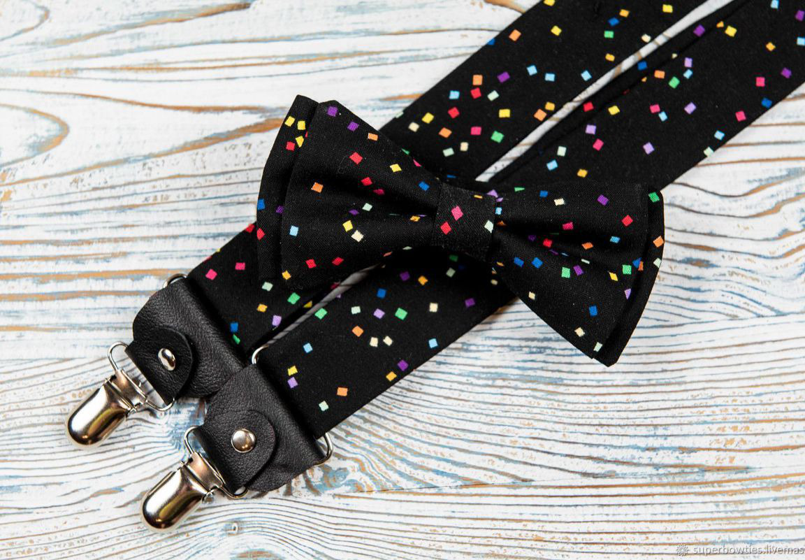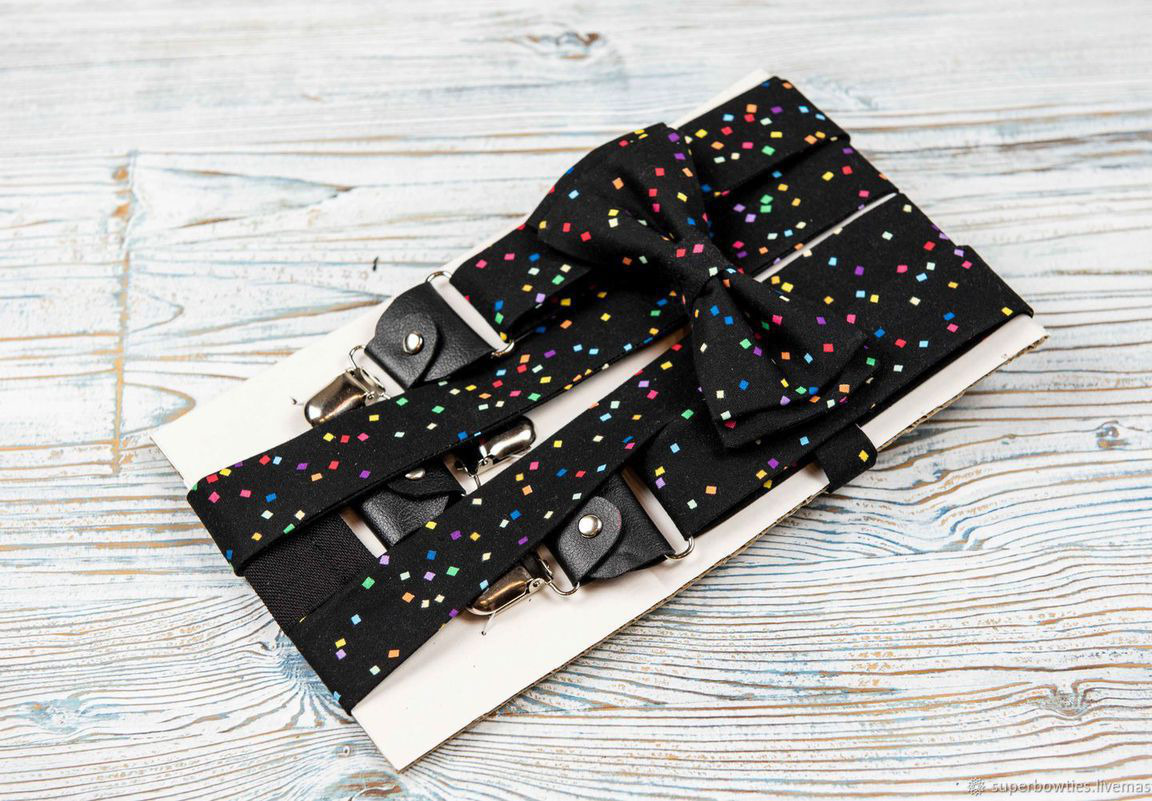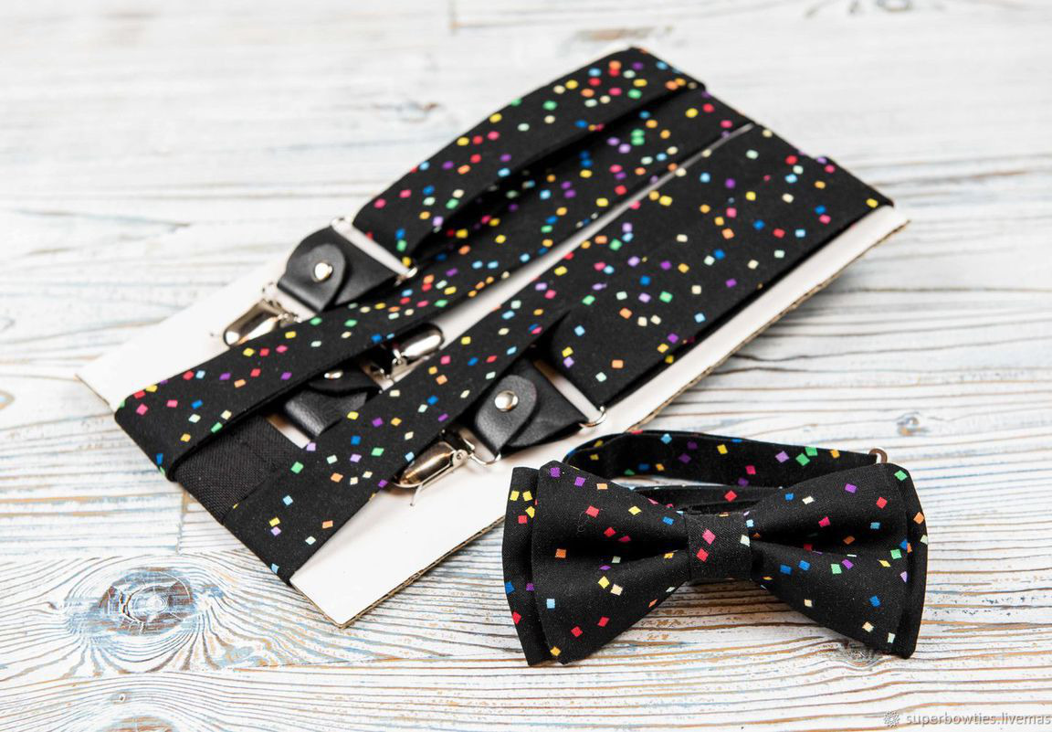 бабочка, галстук, черный, галстук бабочка, разноцветный, бабочка галстук, конфетти, набор с подтяжками, бабочка и подтяжки, галстук и подтяжки, подтяжки