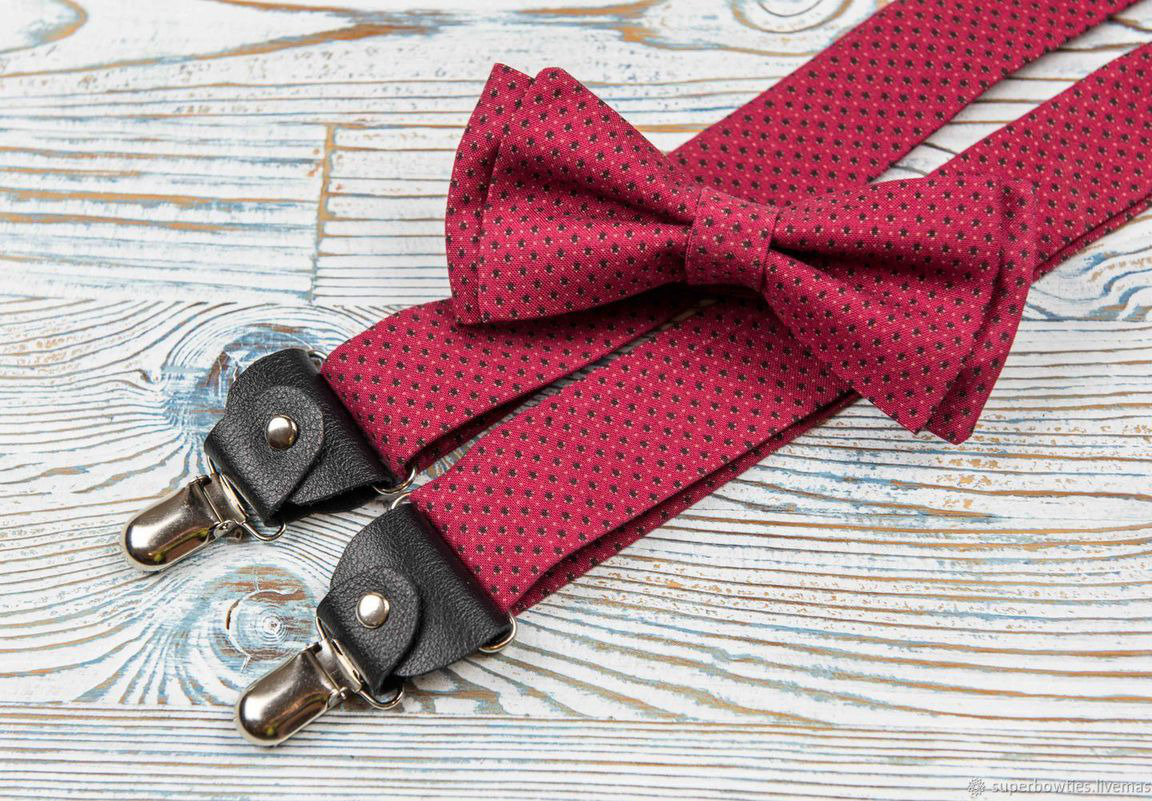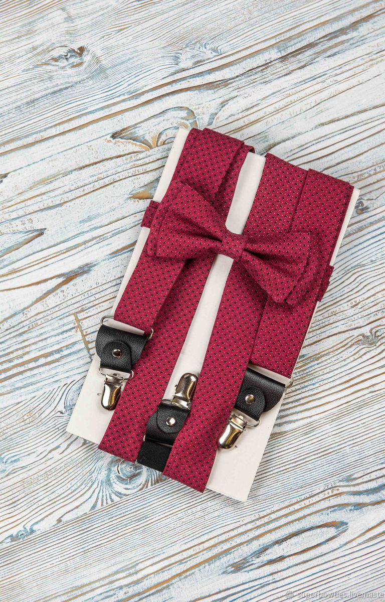 красный, бордовый, бабочка галстук, набор с подтяжками, бабочка и подтяжки, подтяжки