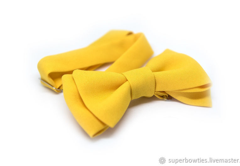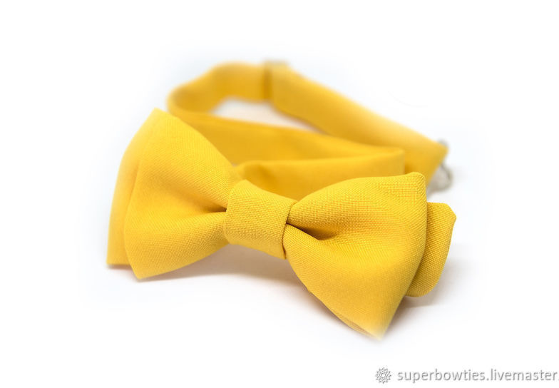Галстук-бабочка желтый выполнен из однотонного габардина. Длина шейной ленты регулируется.