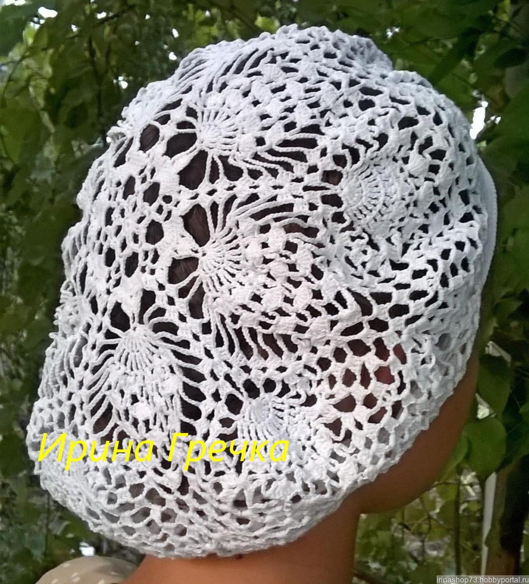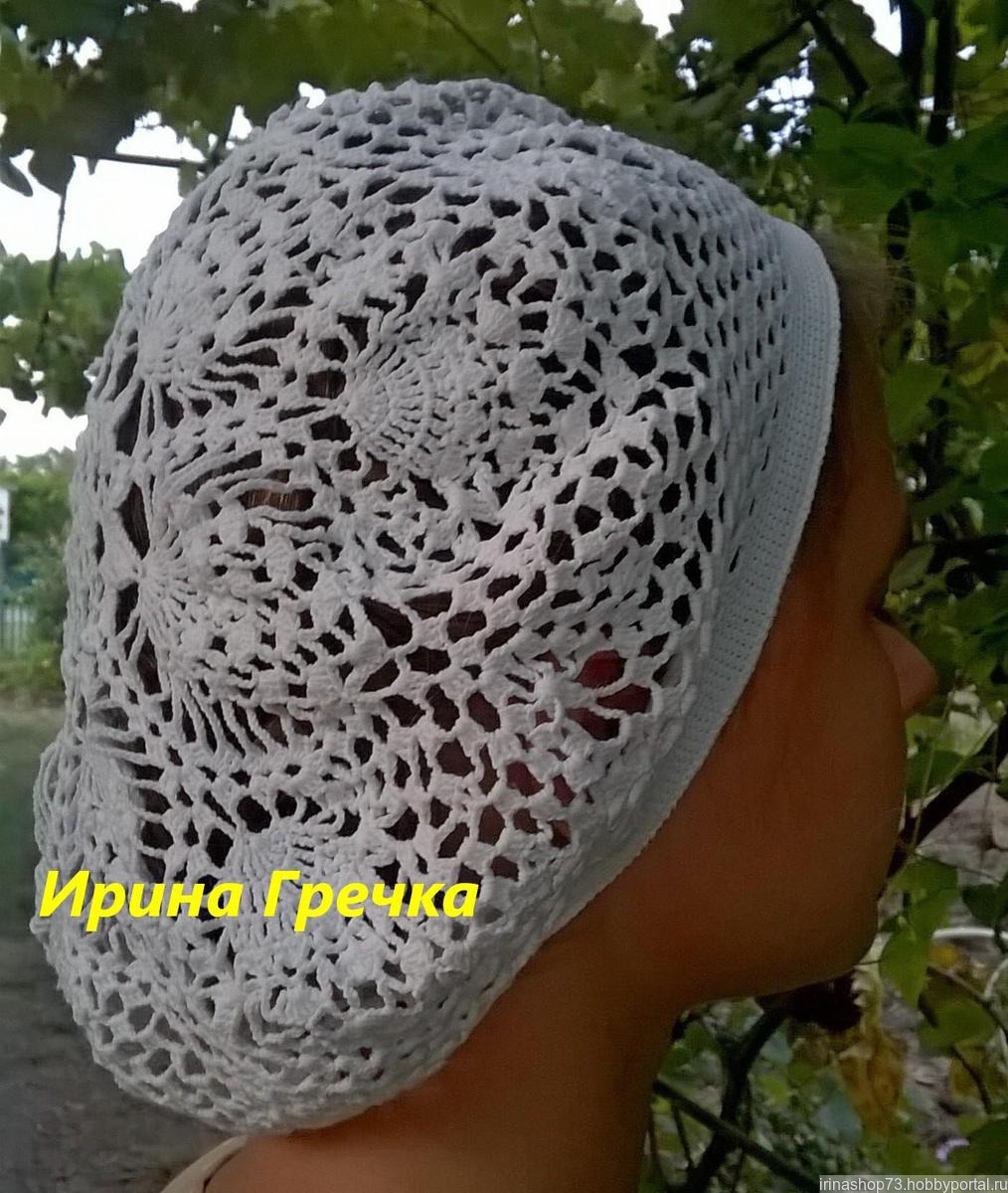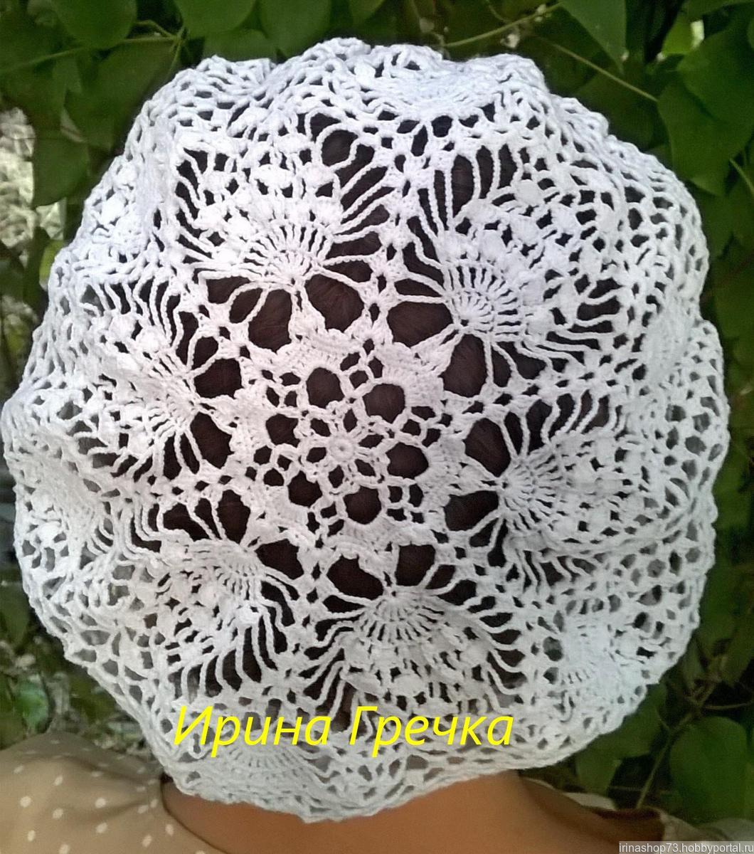 Летний ажурный берет. Несмотря на то, что берет ажурный - прекрасно защищает голову от солнечных лучей.