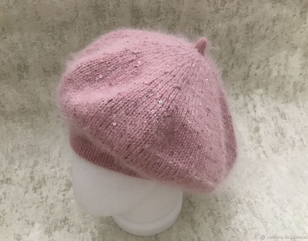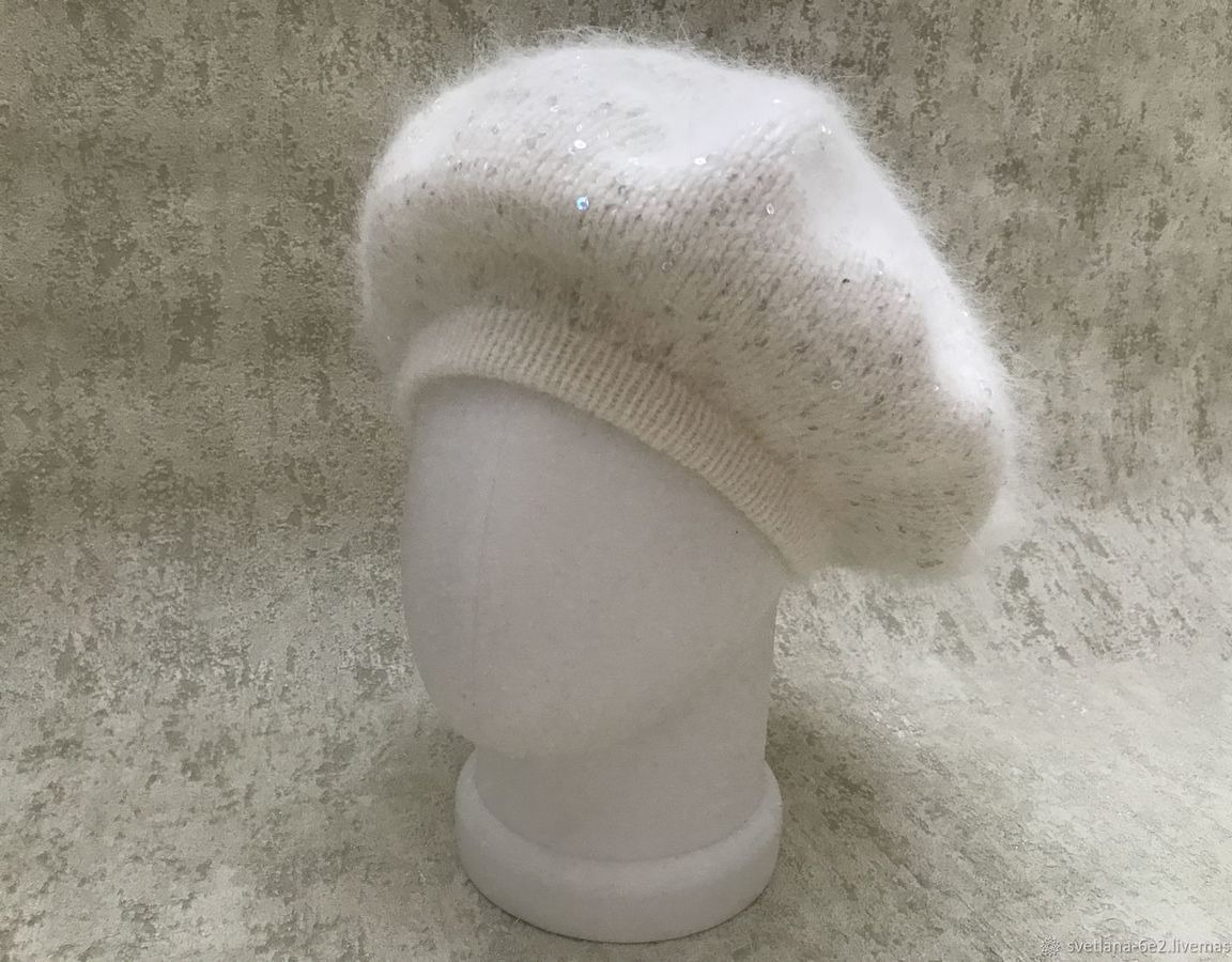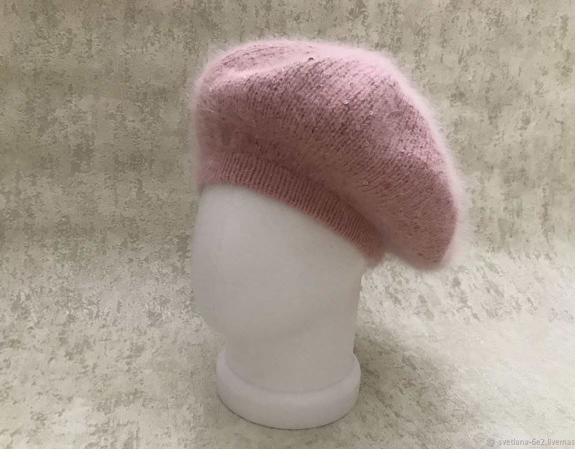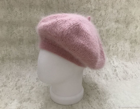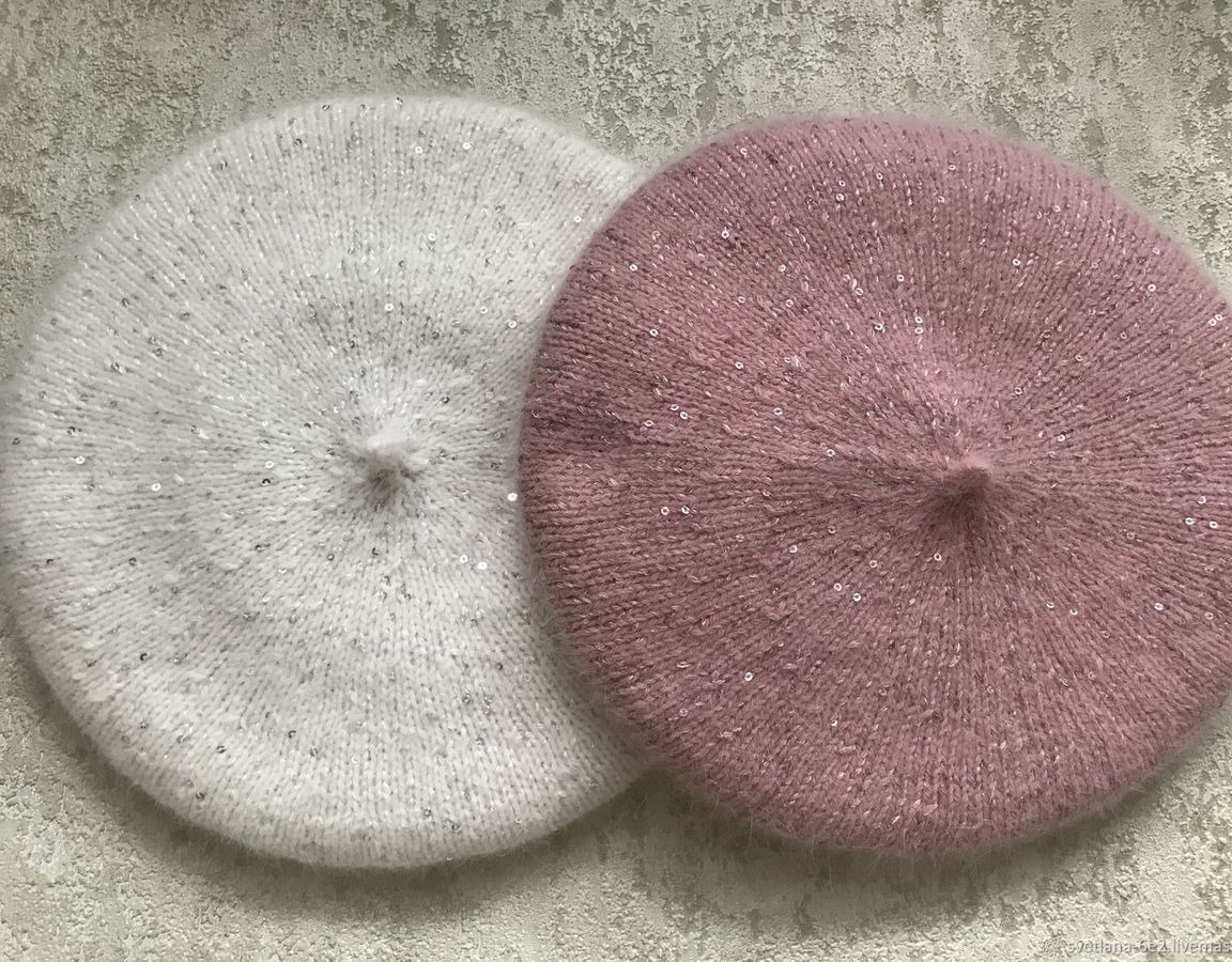 вязаный берет, белый берет, женский берет, розовый берет, пушистый берет