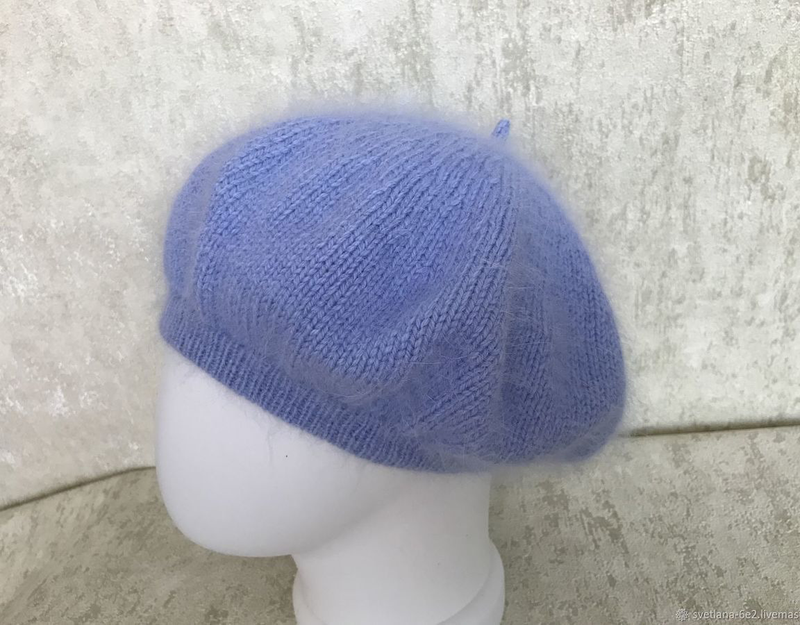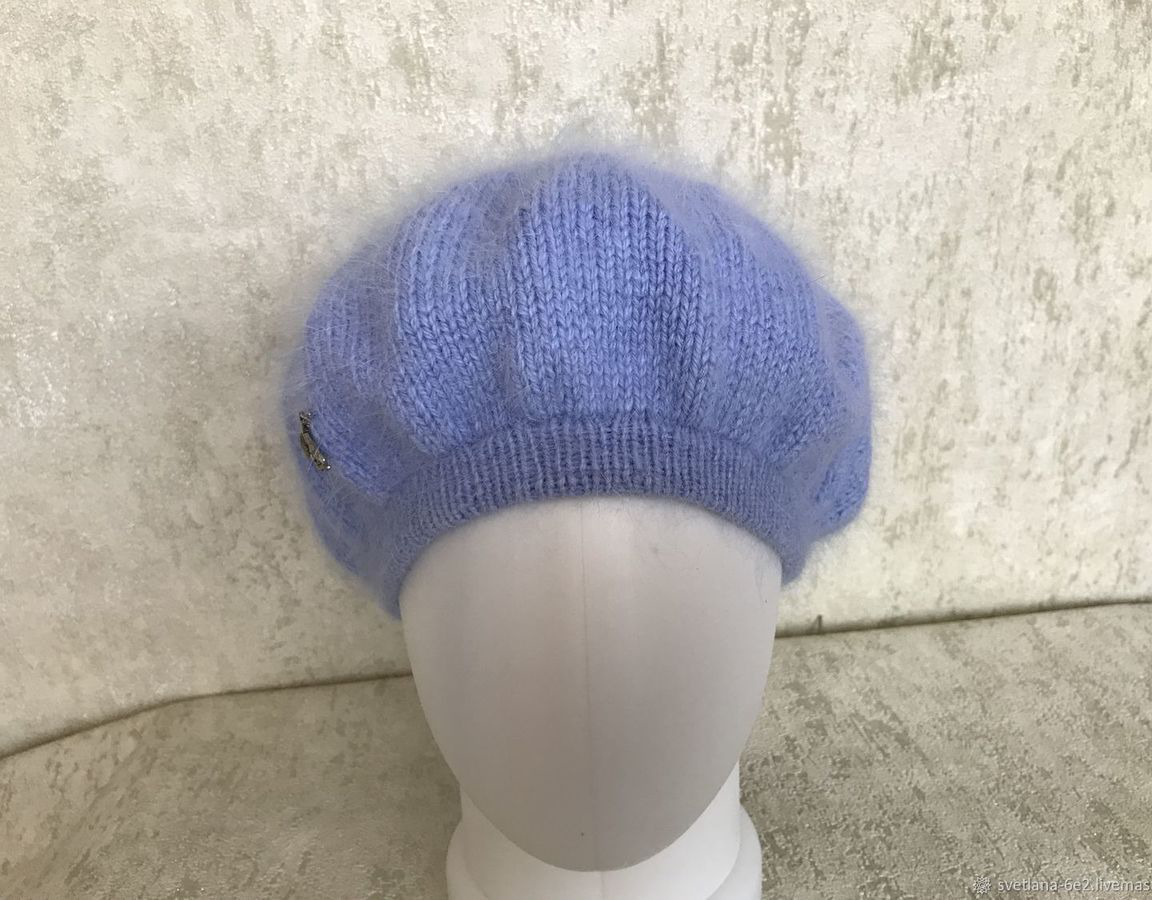 подарок девушке, подарок женщине, берет для девочки, берет спицами, вязаный берет, белый берет, женский берет, голубой берет, пушистый берет, классический берет, берет с брошью