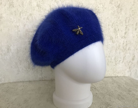 Маленький французский берет, связанный вручную из пуха норки и украшенный маленькой брошью в виде пчёлы, должен быть у каждой женщины. Готовый беретик в васильковом цвете ждёт свою хозяйку!