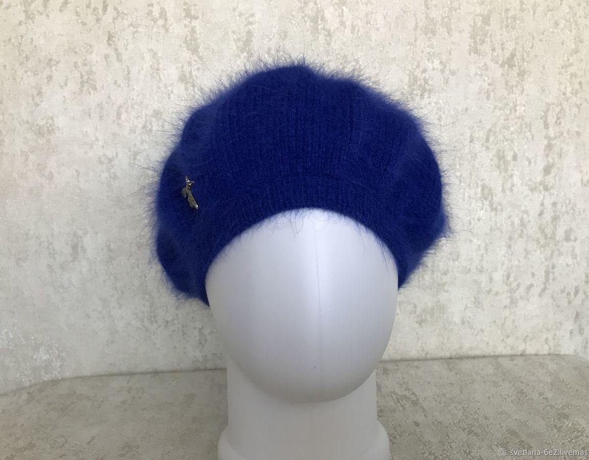 берет для девочки, берет спицами, вязаный берет, женский берет, пушистый берет, классический берет, берет с брошью, синий берет