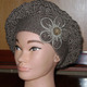 Берет полушерстяной кофейного цвета, вязанный крючком. Декорирован цветком с деревянной пуговицей.