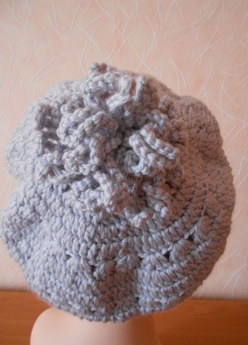 Берет зимнего варианта и цветок хризонтемы связан крючком. Внутри берета связан подклад, при носке тепленький, не колется и не вызывает аллергии. Беретик украшен бусинками.