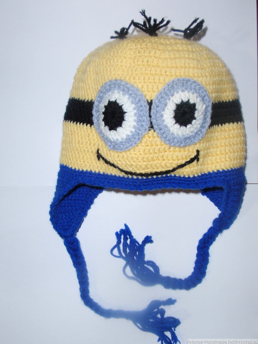 шапка миньон порадует и согреет ваших детей, ведь иногда они себя ведут также как и эти веселые мультяшки, Вы улыбнетесь видя как Ваши дети сольются в образ, ведь им так идет этот сине-желтоватый образ.