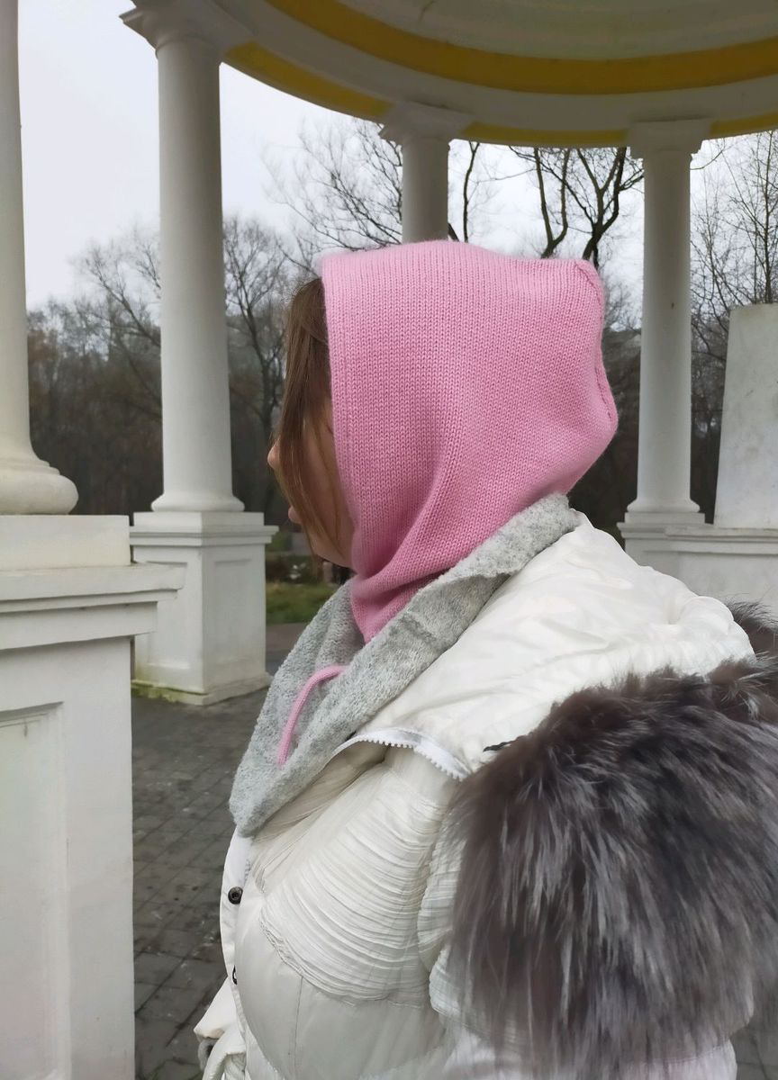 Теплый и нежный капор из кашемировой пряжи согреет даже в самую холодную погоду. Капор связан на машине .По окату лица продет шнурок с помощью которого можно затянуть изделие плотнее и оно не будет продуваться. Вещь универсальная и очень удобная как для поездок на машине так и в городском транспорте, т.к. всегда можно быстро откинуть капюшончик назад не повредив при этом прическу.