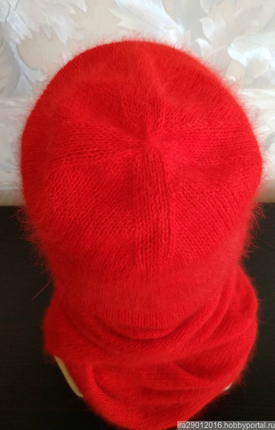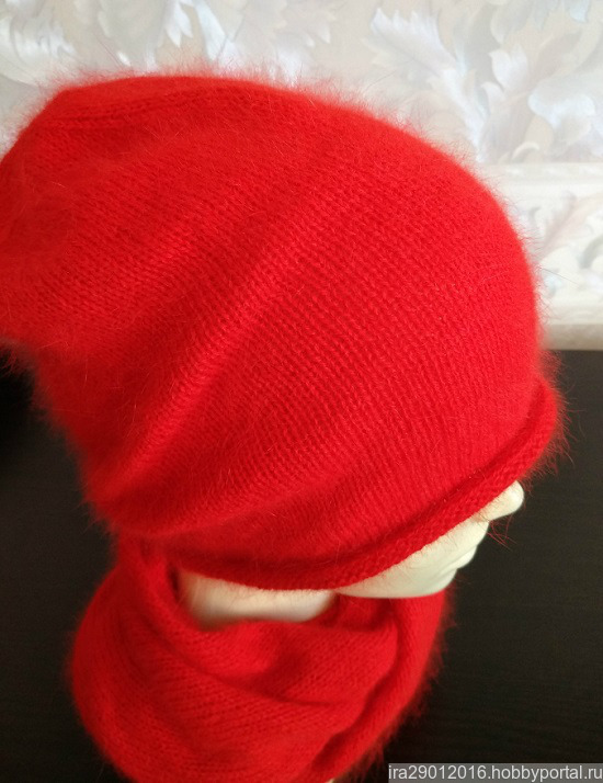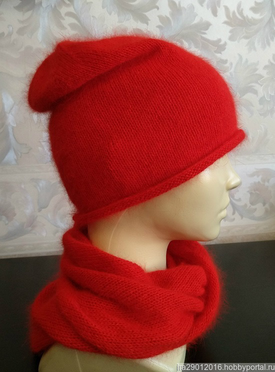 Комплект из шапки бини и снуда(круговой),ярко-красного цвета, из высококачественной ангорки Filpucci Filati,нежнейшая как облачко,очень мягкая и теплая при этом тоненькая и элегантная!В меру пушистая!Размер шапочки 56-58-60,высота 25 см.,размер снуда -ширина 20,длина два сложения 55 см.