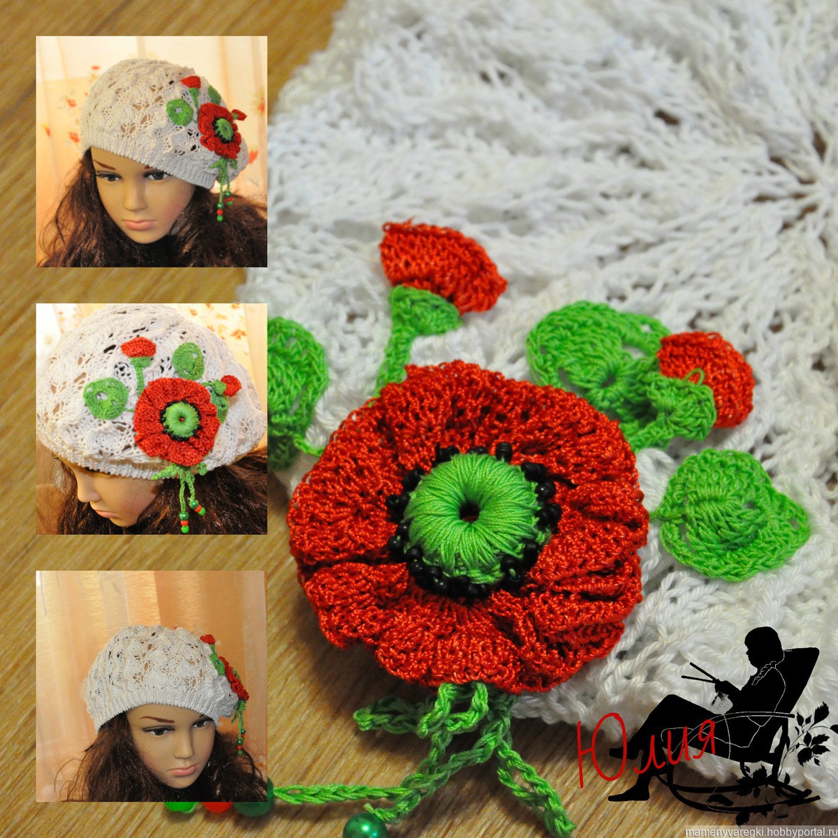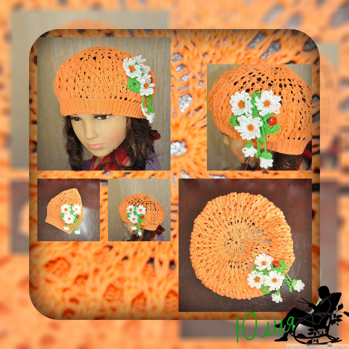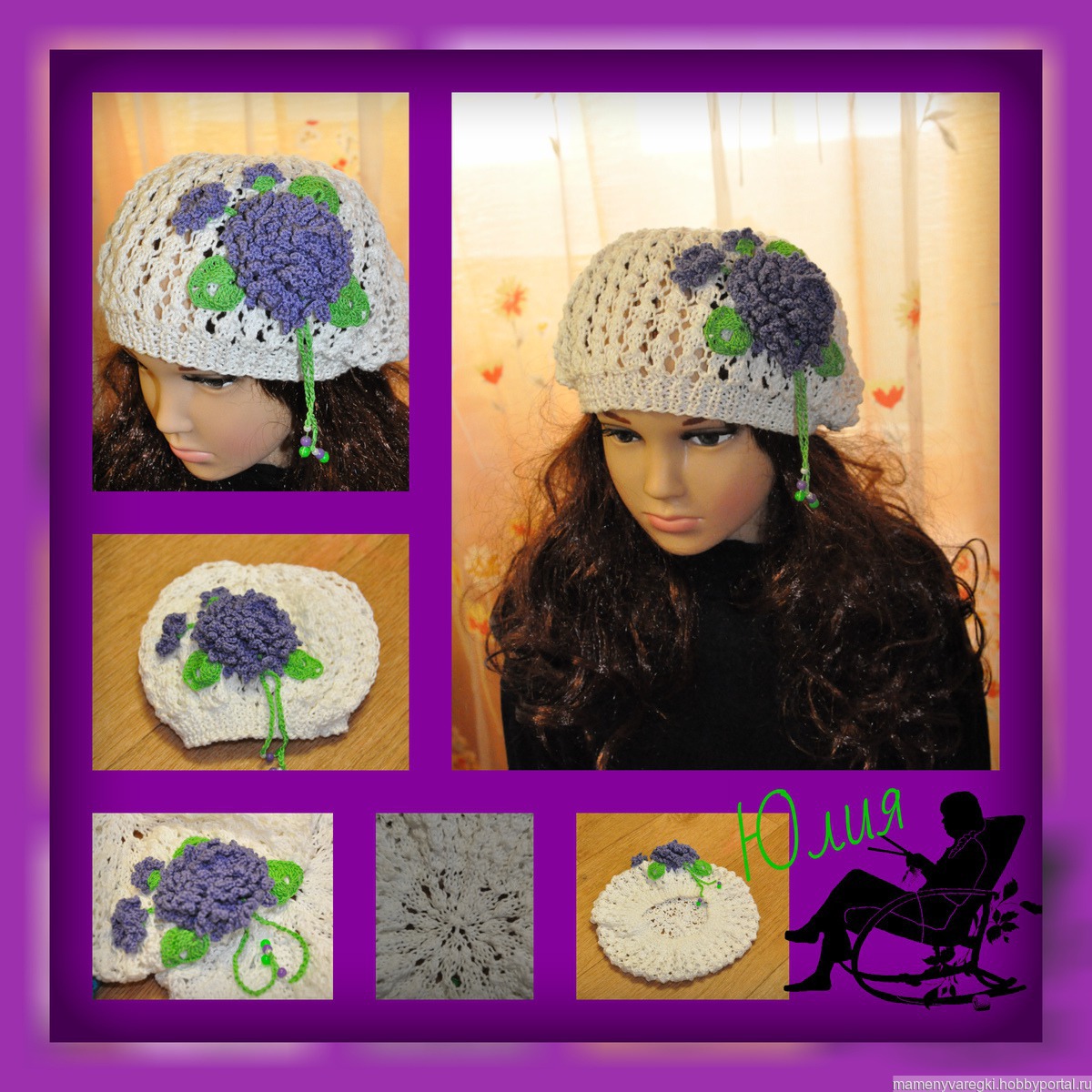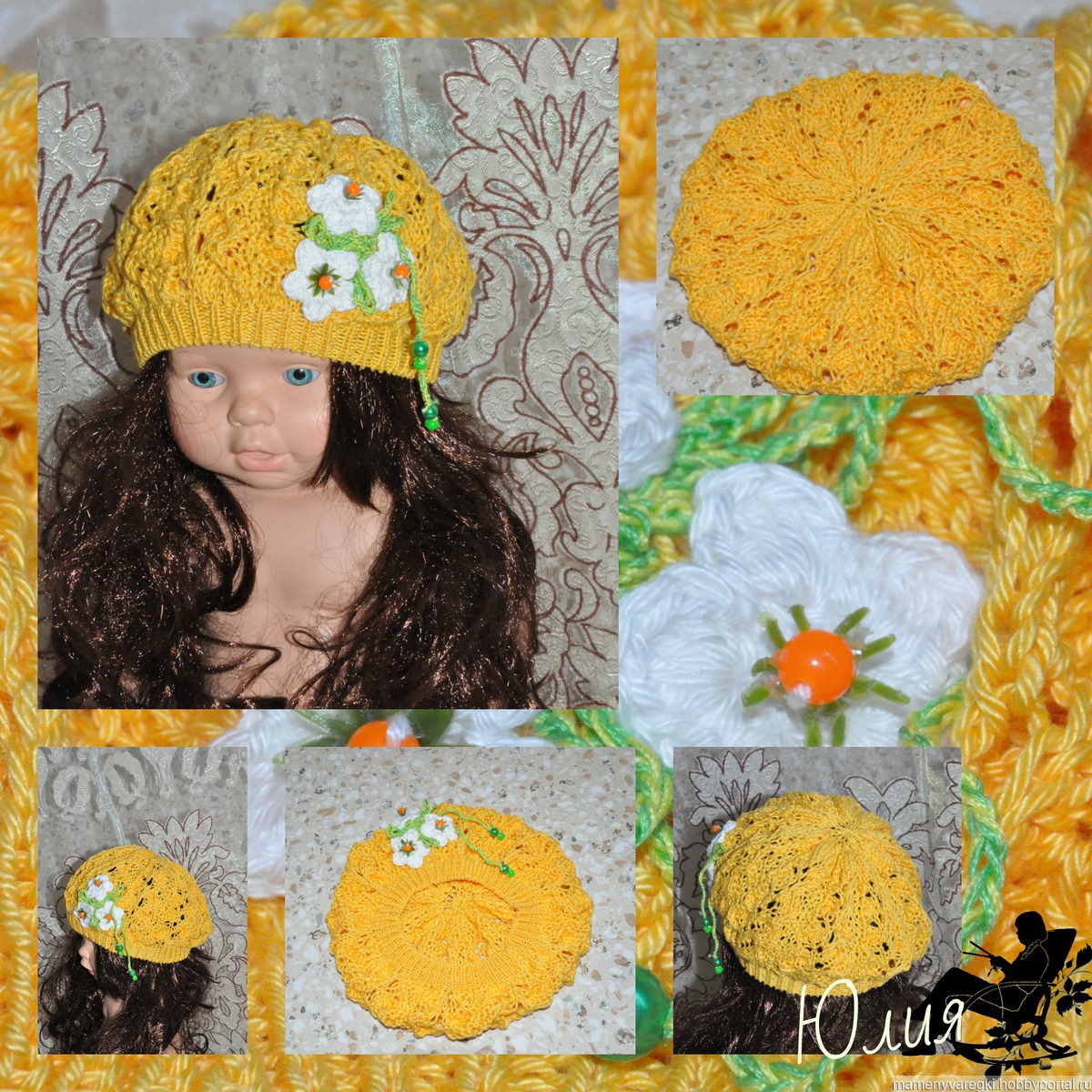 Летние беретики связаны из хлопка. Цвет беретика может быть любым