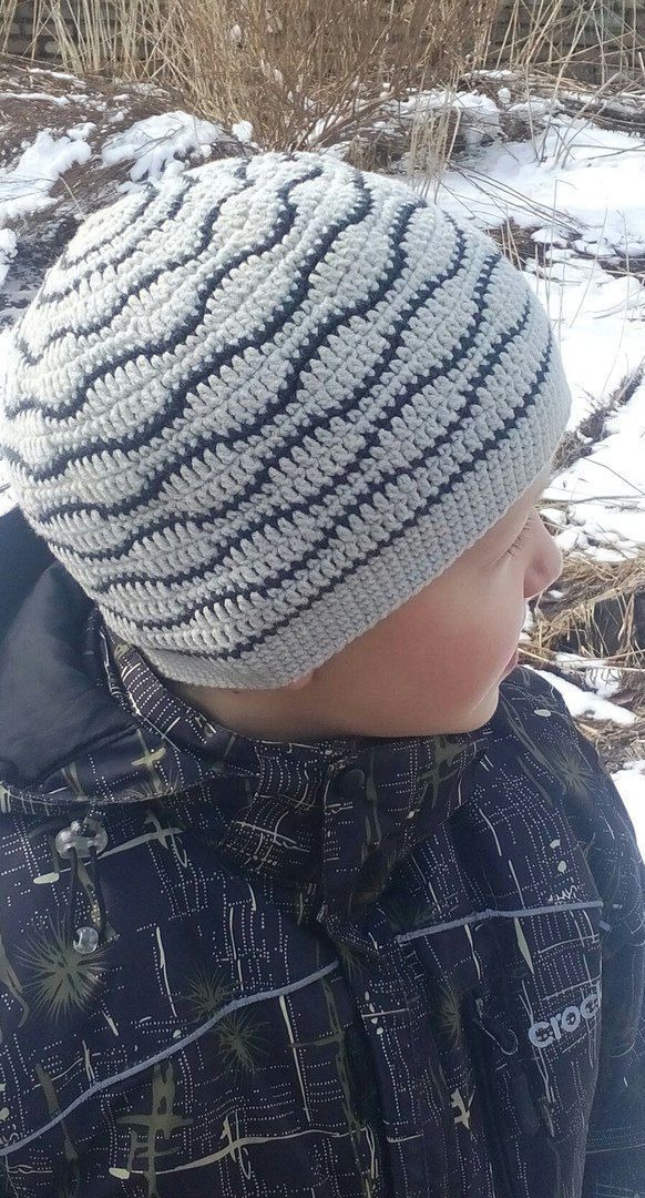 Шапка для мужчины или подростка в полоску защитит от весенних холодов. Возможен также зимний вариант, цвет на выбор заказчика